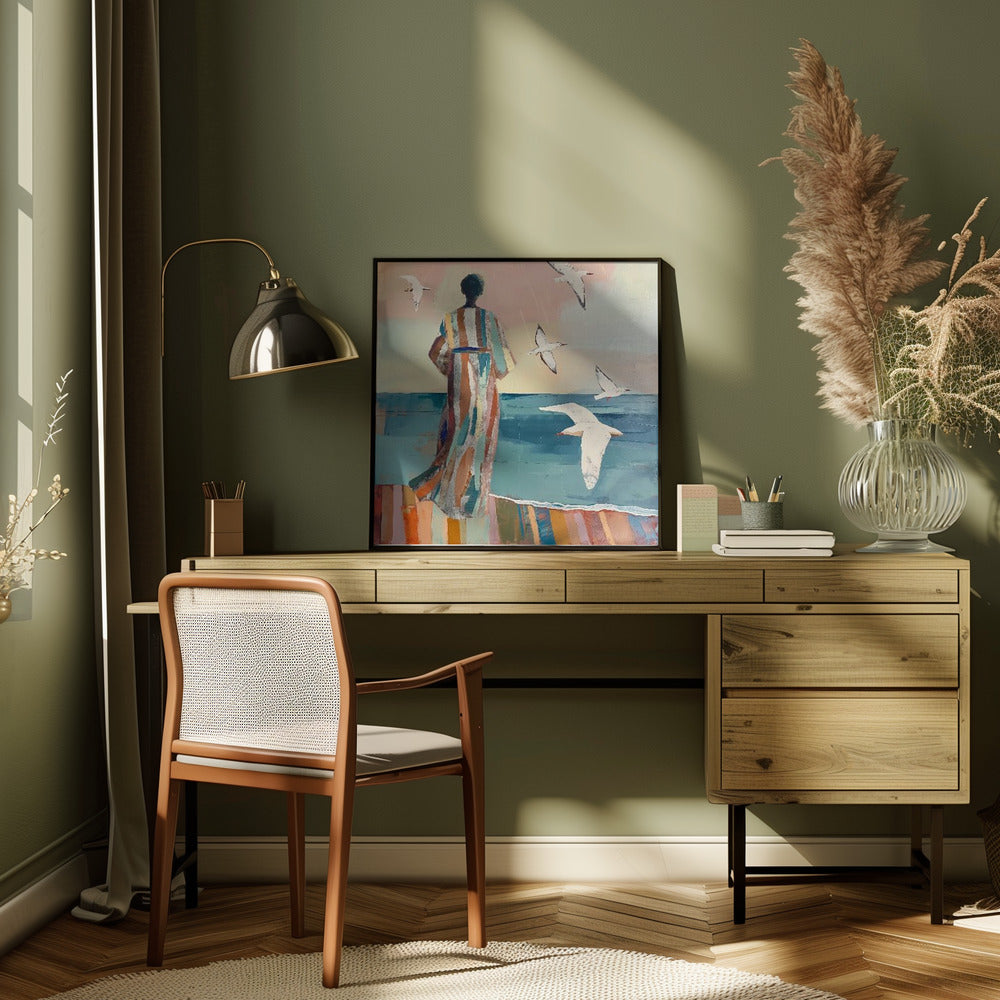 Explore our many print options for Woman and Seagull by artist Graham Browne.