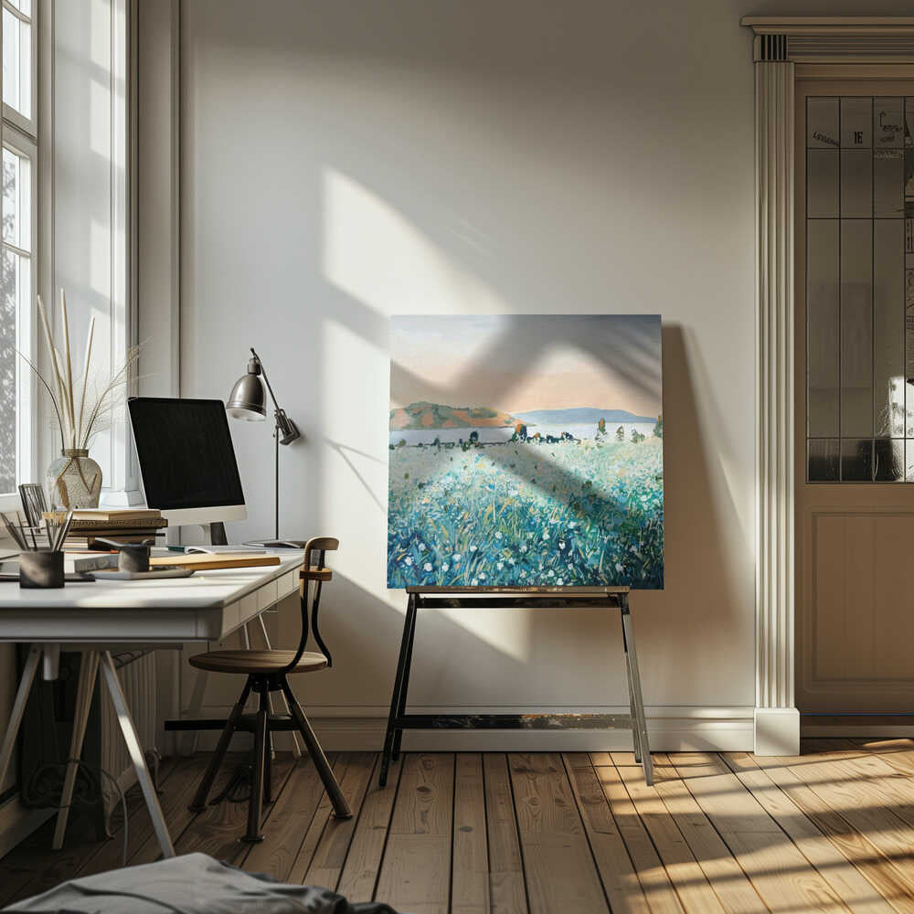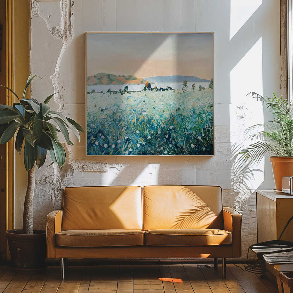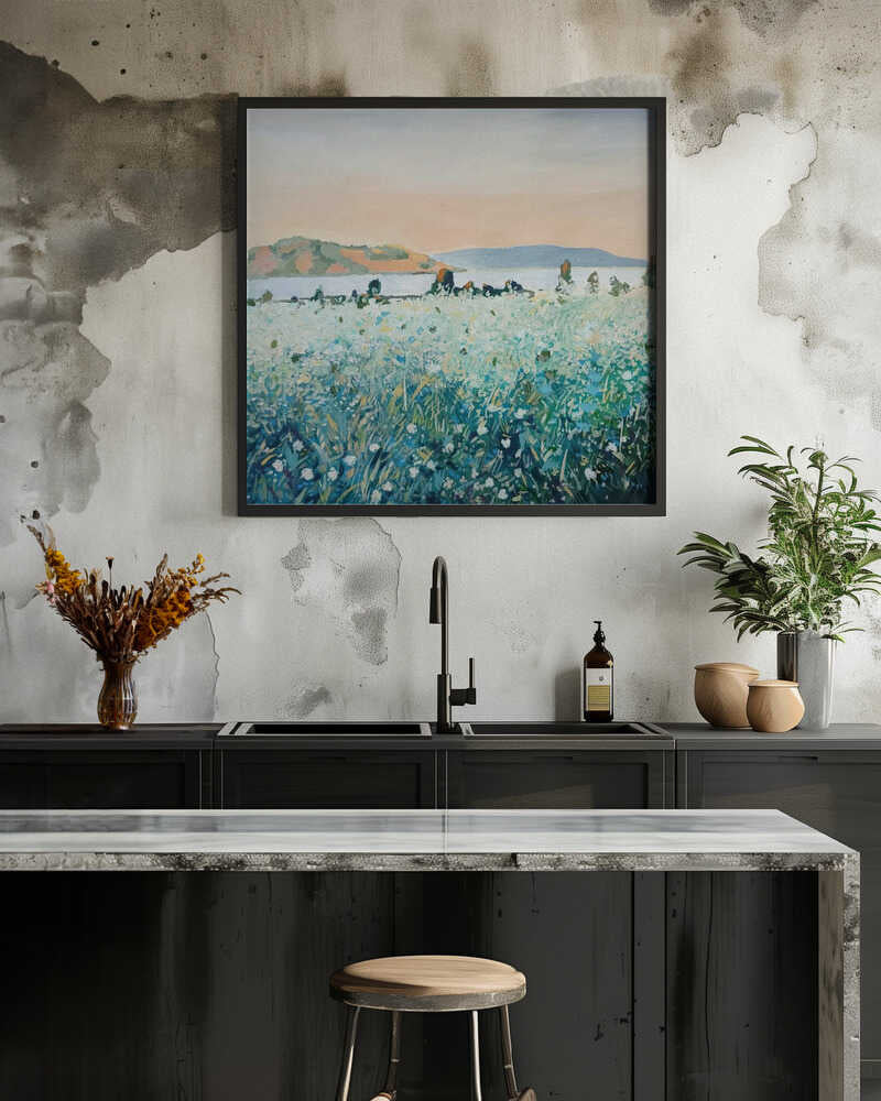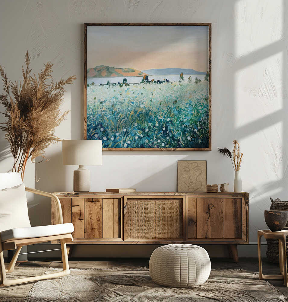 Inlet - Ochre Green Blue Boho Landscape Canvas or Art Print