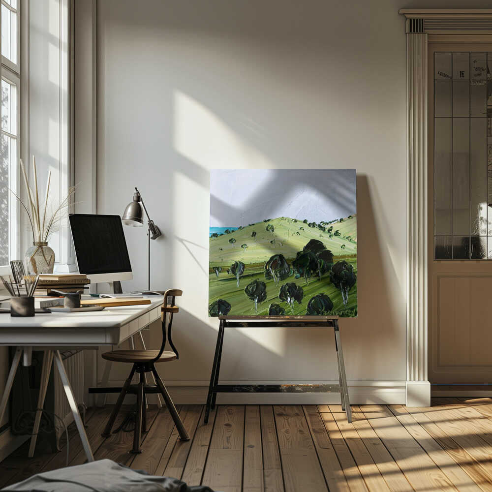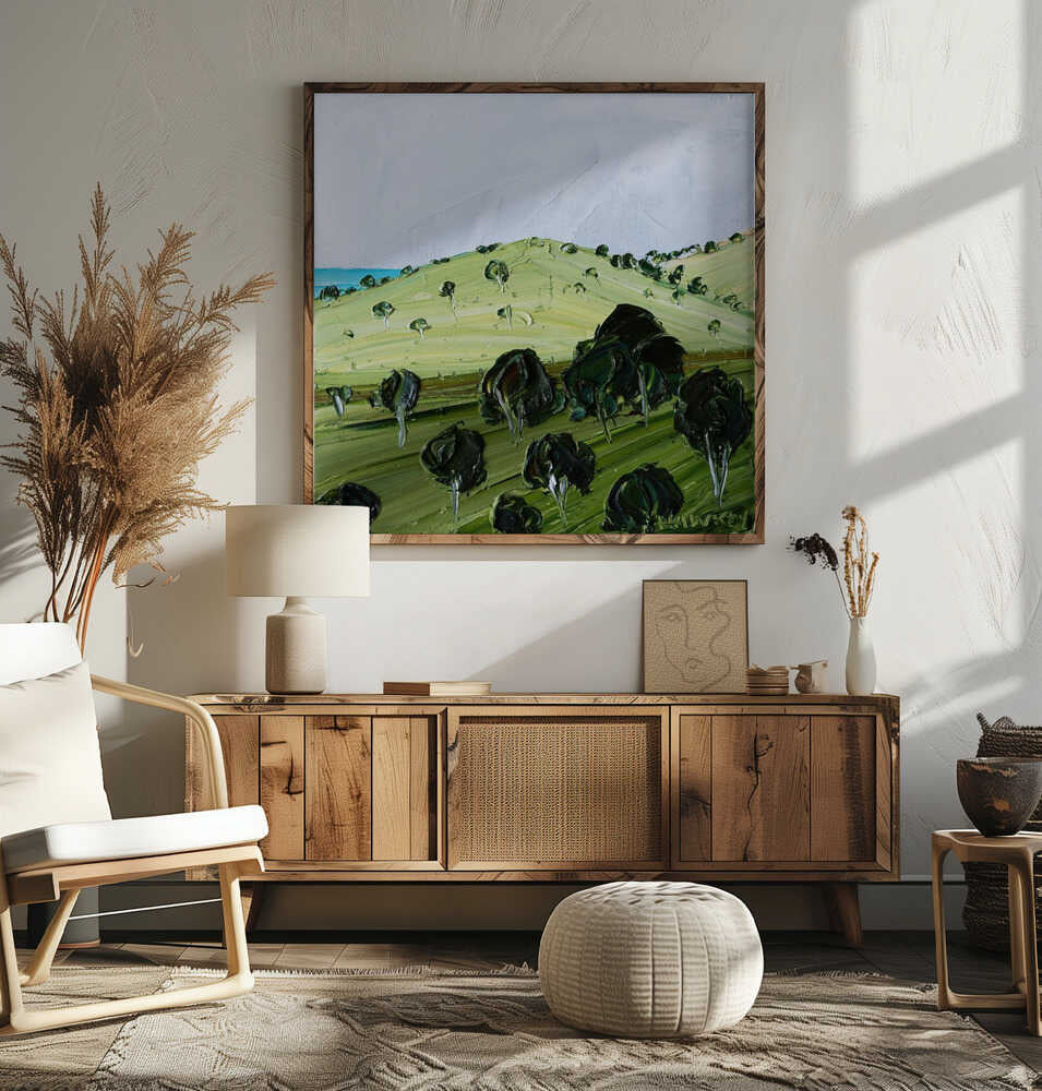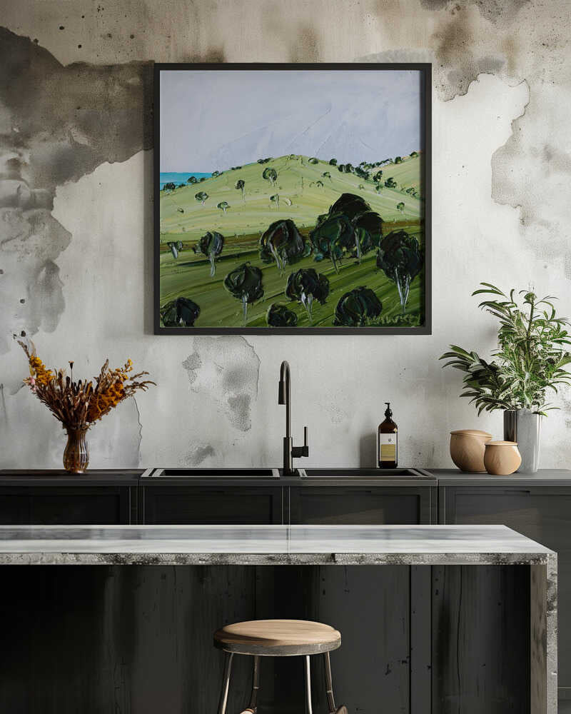 Across The Paddock - Original Australian Farm Painting Stretched Canvas Wall Art Print