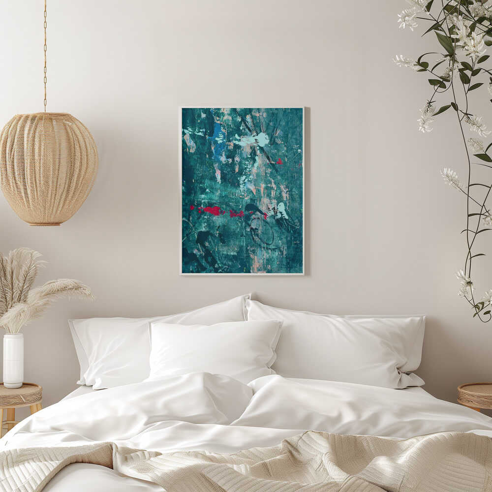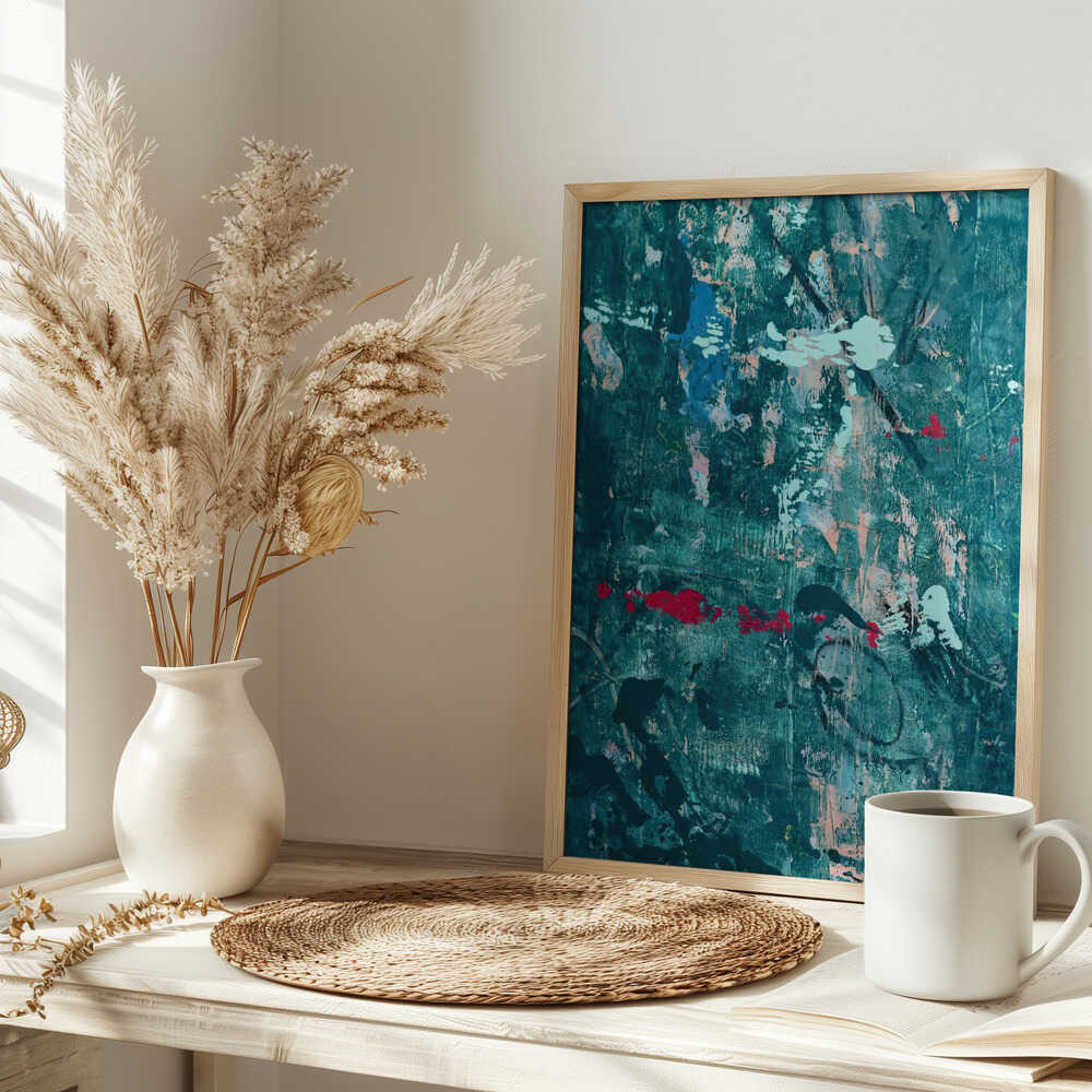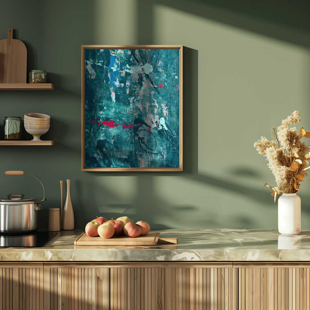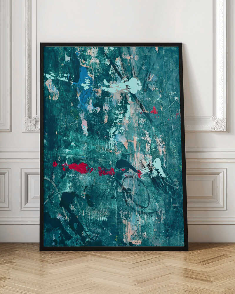 Unwind - Blue and Gree Abstract Alcohol Ink Wall Art Print