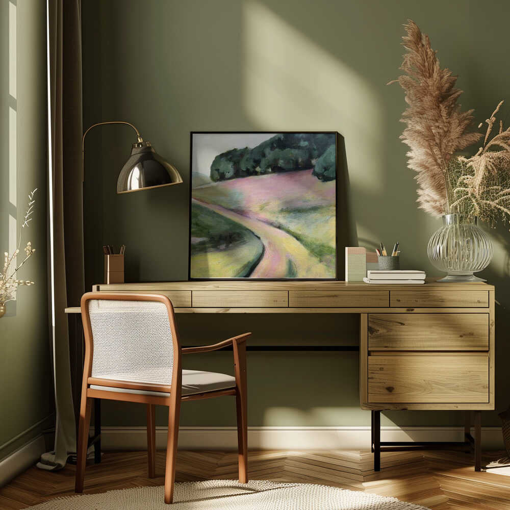 A Magic Place - Two Piece Square Abstract Landscape Pink and Green Print Set