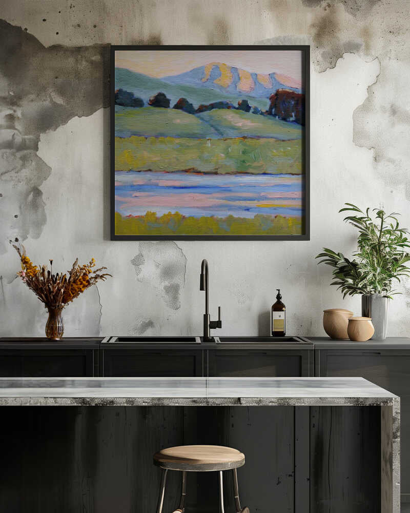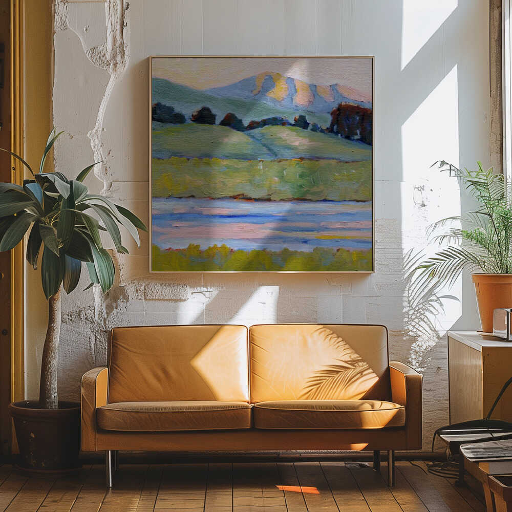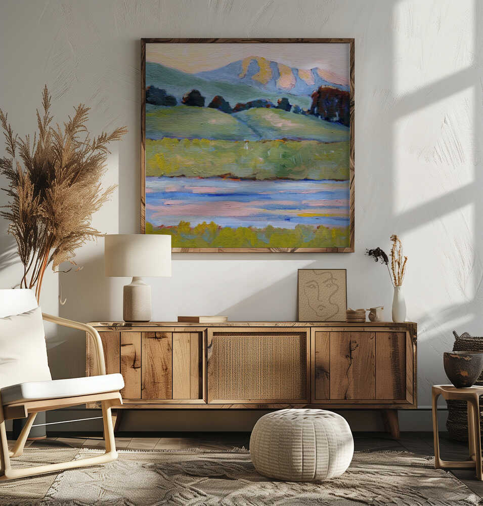 Inlet - Ochre Green Blue Boho Landscape Canvas or Art Print