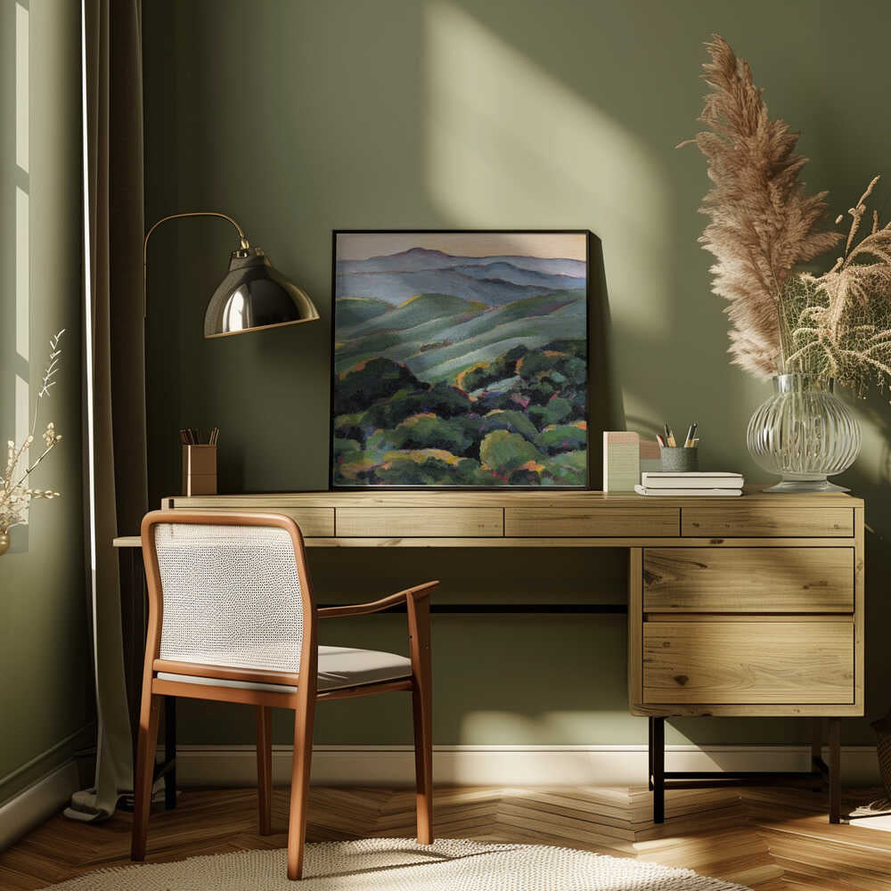 Inlet - Ochre Green Blue Boho Landscape Canvas or Art Print