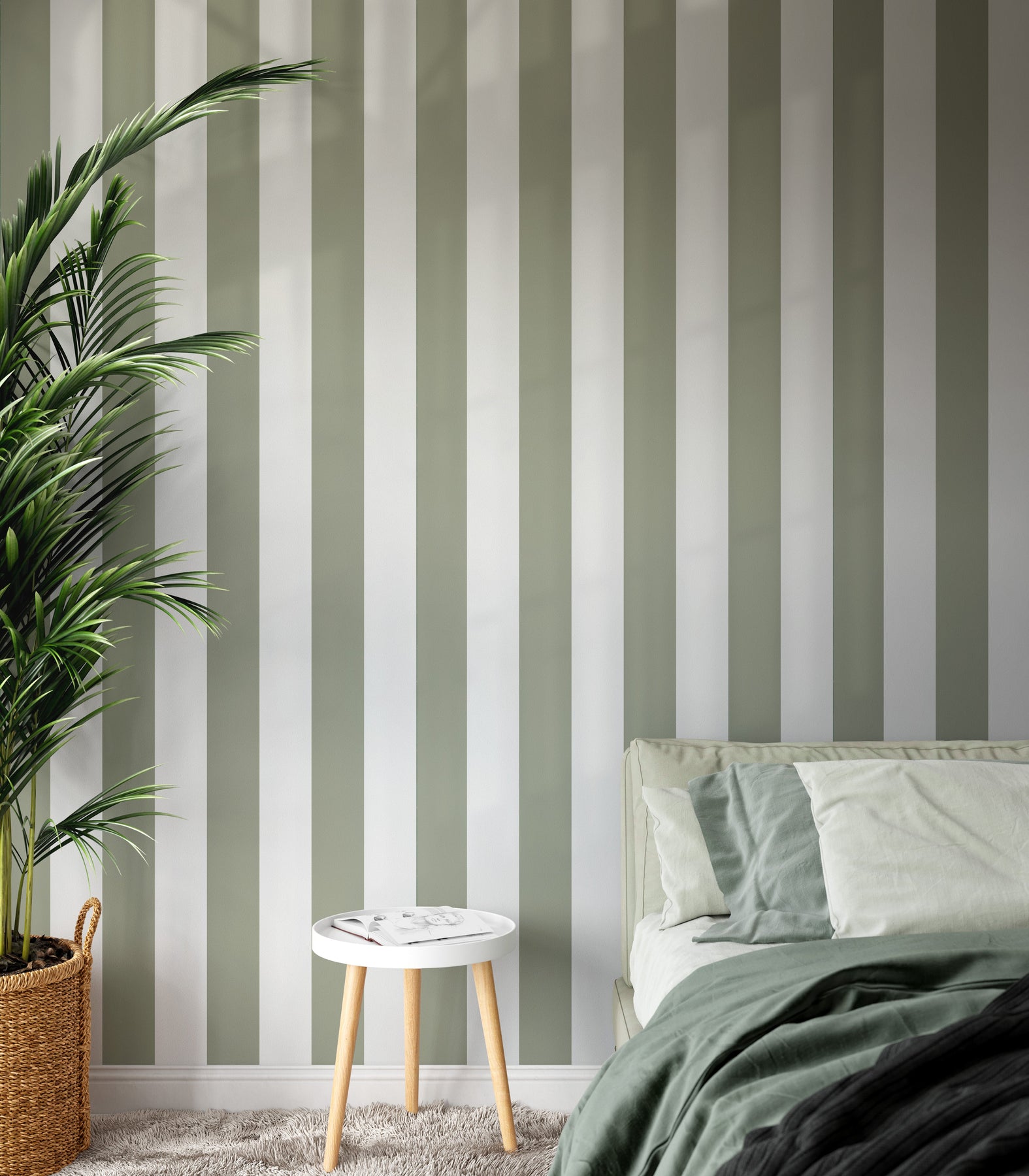 Sage Green Striped Wallpaper - Peel and Stick Adhesive Wallpaper