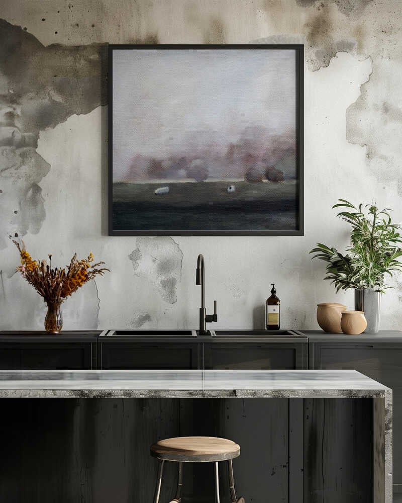 Across The Paddock - Original Australian Farm Painting Stretched Canvas Wall Art Print