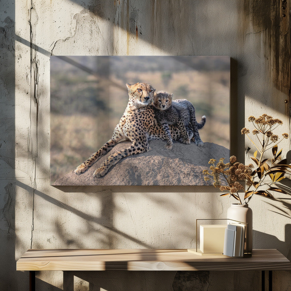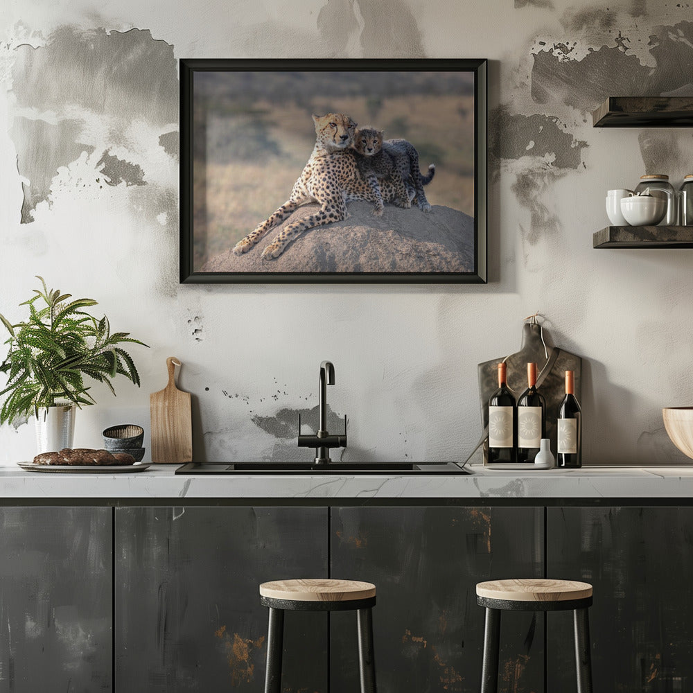 Explore our many print options for Cheetah and cup! by artist Jie Fischer.