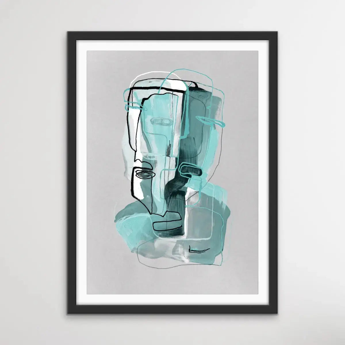 Many Faced in Turquoise - Colourful Line Drawing Illustration by Natalia Brovchenko Available as a Canvas or Paper Print