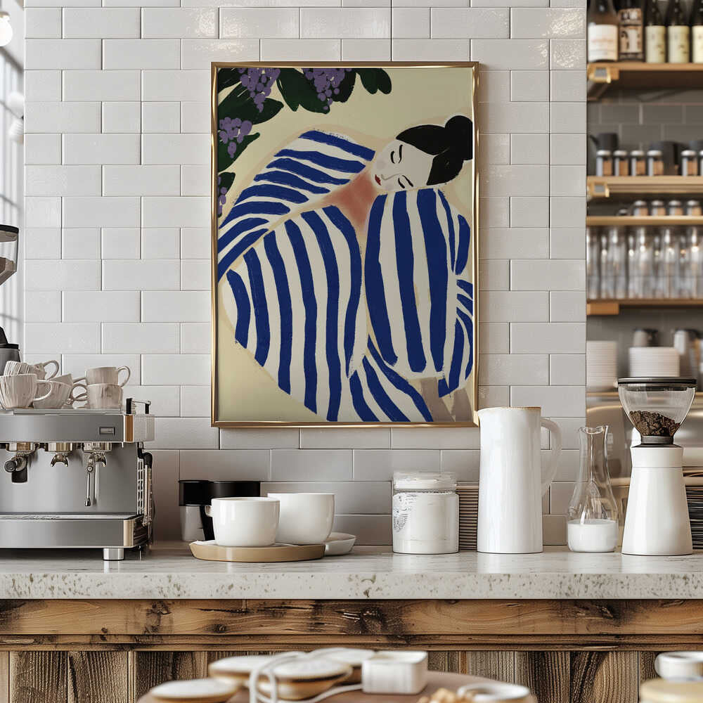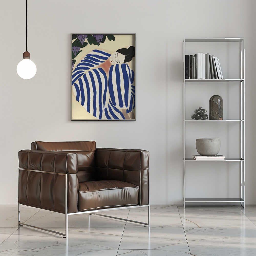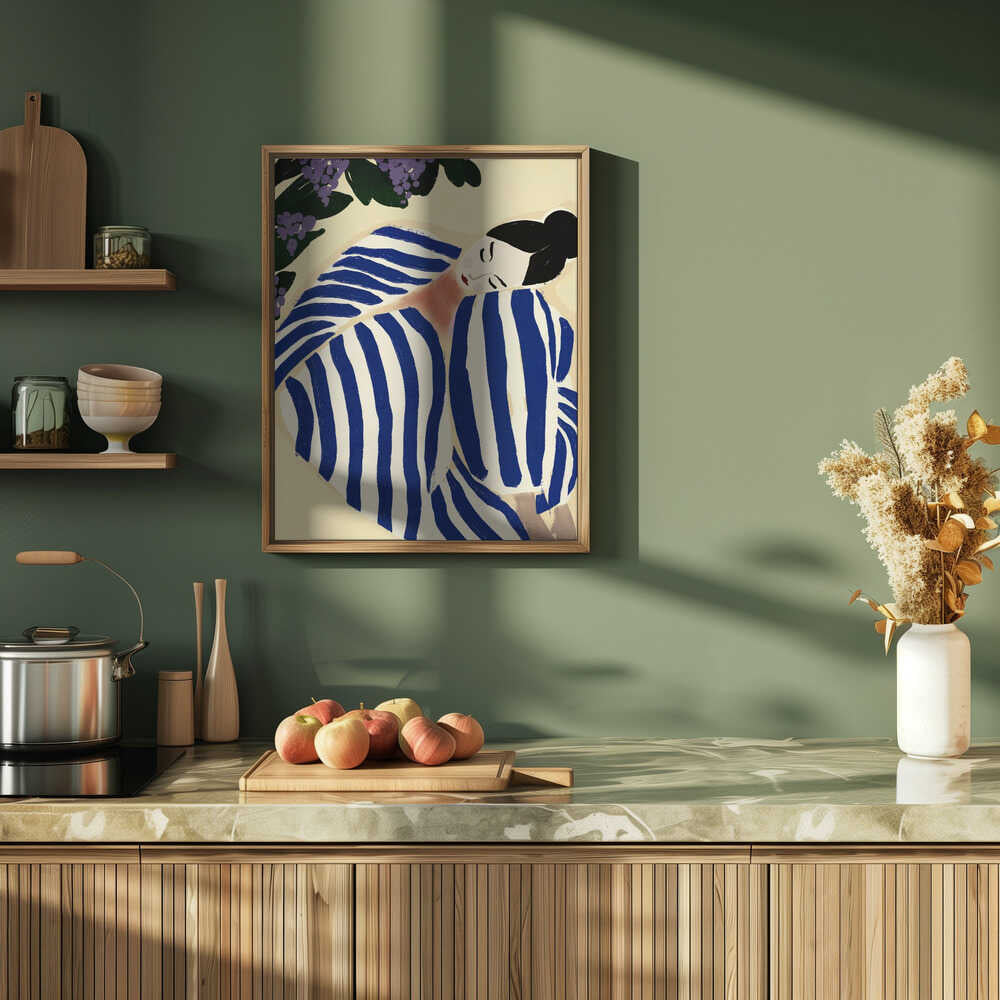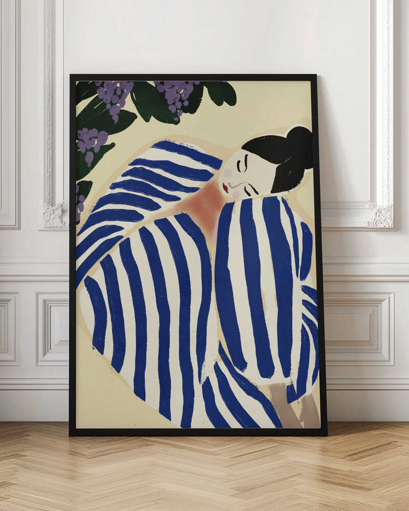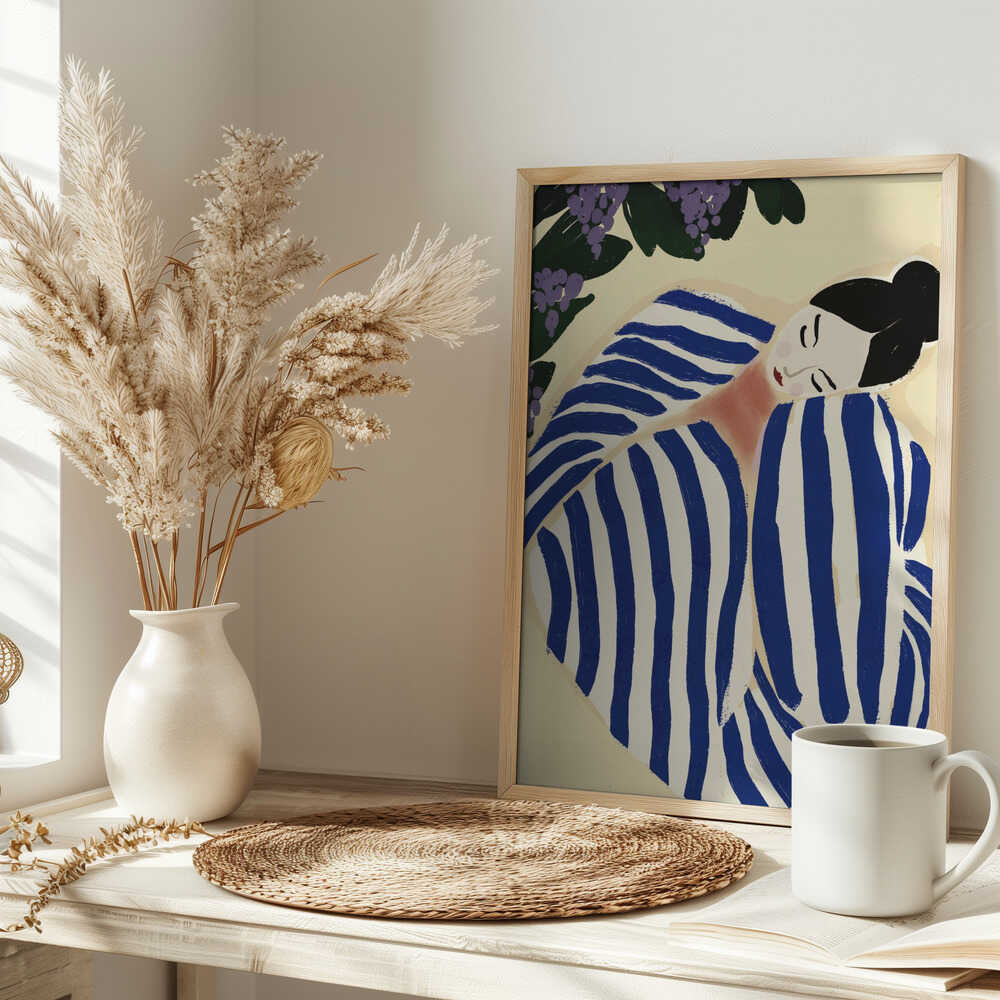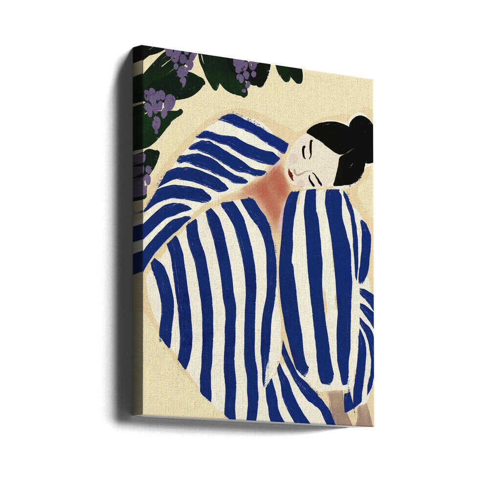 Pensive Woman Striped Dress - Stretched Canvas, Poster or Fine Art Print