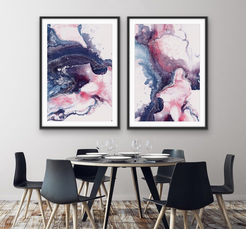 These gorgeous abstract ink prints in blue and red are striking and elegant. Perfect hung side by side, or on opposite sides of a doorway for a complementary effect, Salt Lake is a contemporary and eye-catching set of prints.