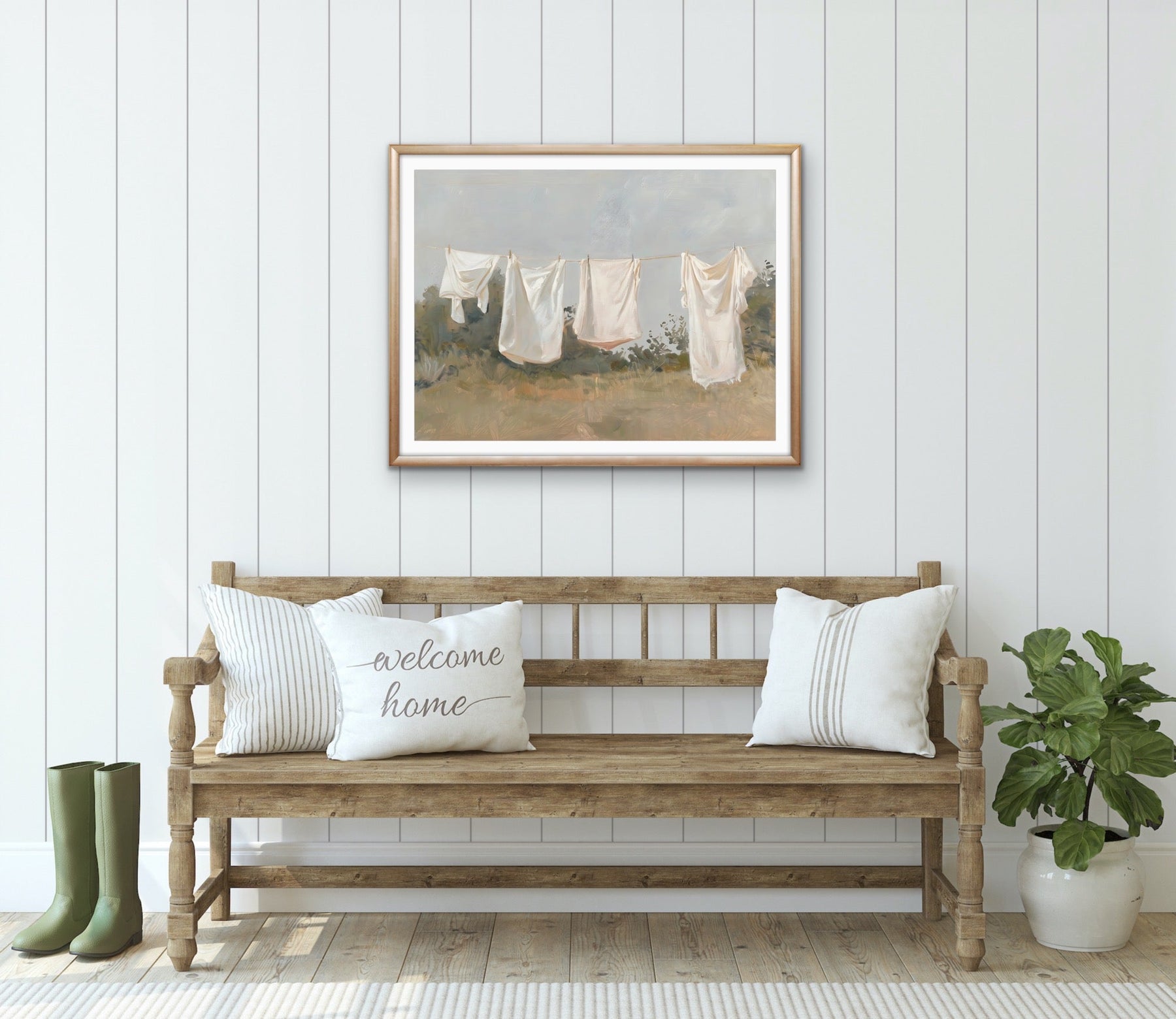 Enjoy our light and vintage clothesline print, making you feel like your right in the country. Perfect for laundry decor or anywhere in the home.