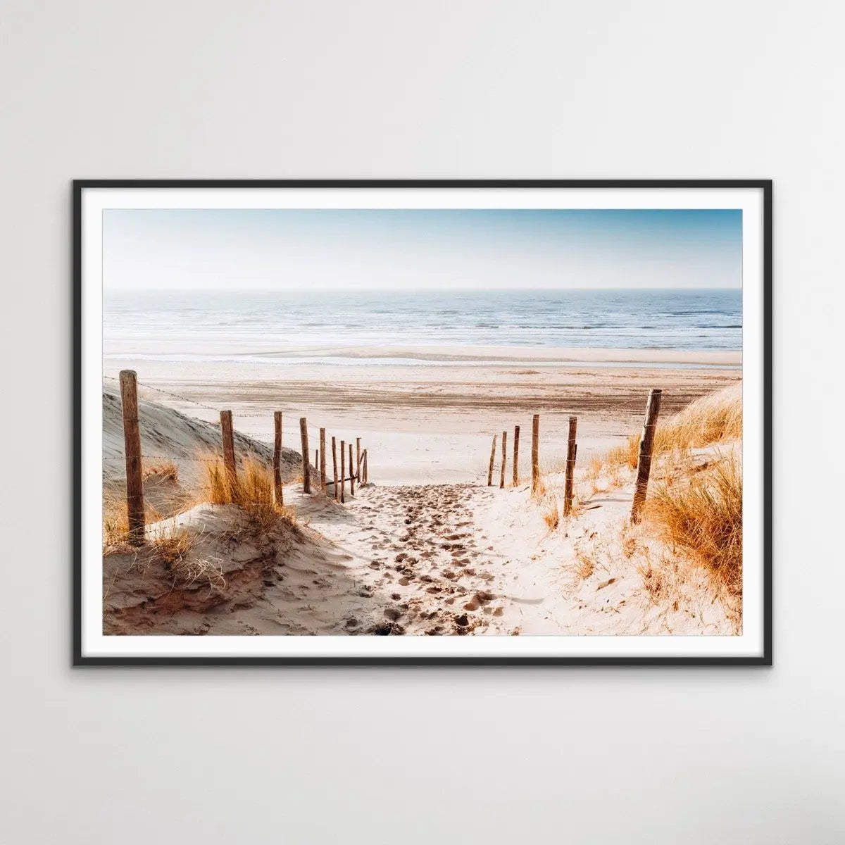 This gorgeous beach print features the access point to the beach, in slightly washed out, dreamy tones with copper grass on either side.