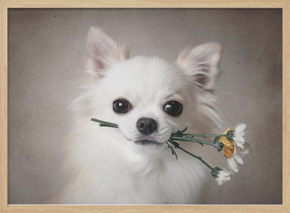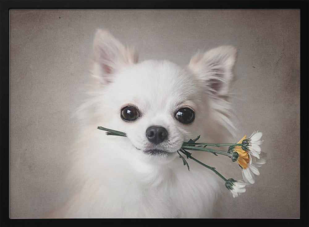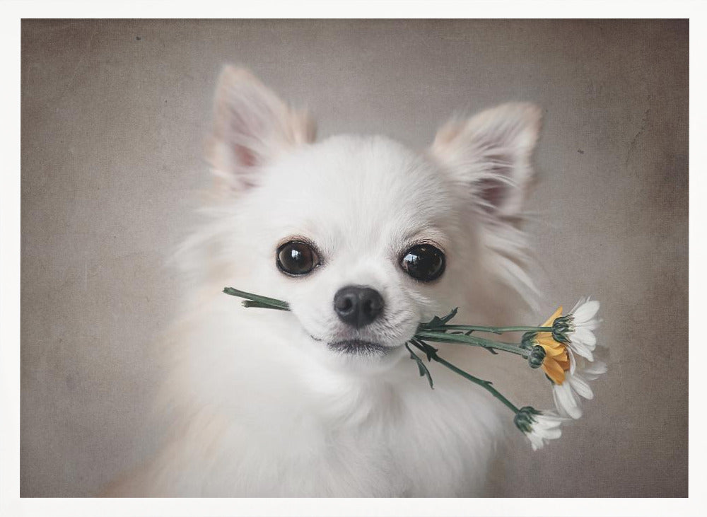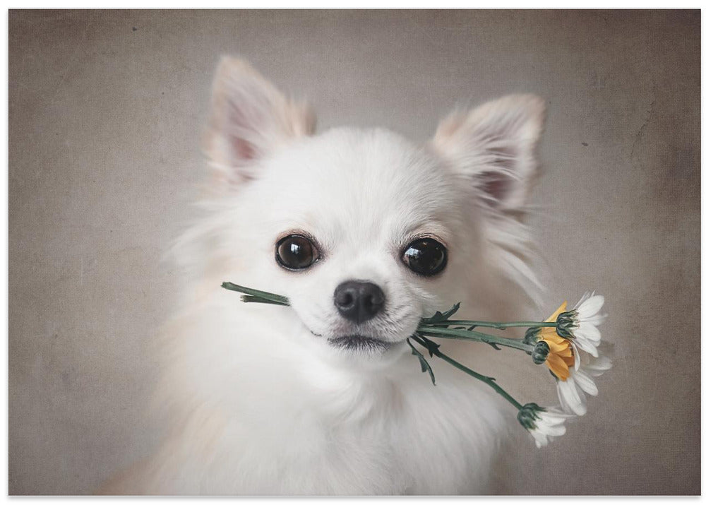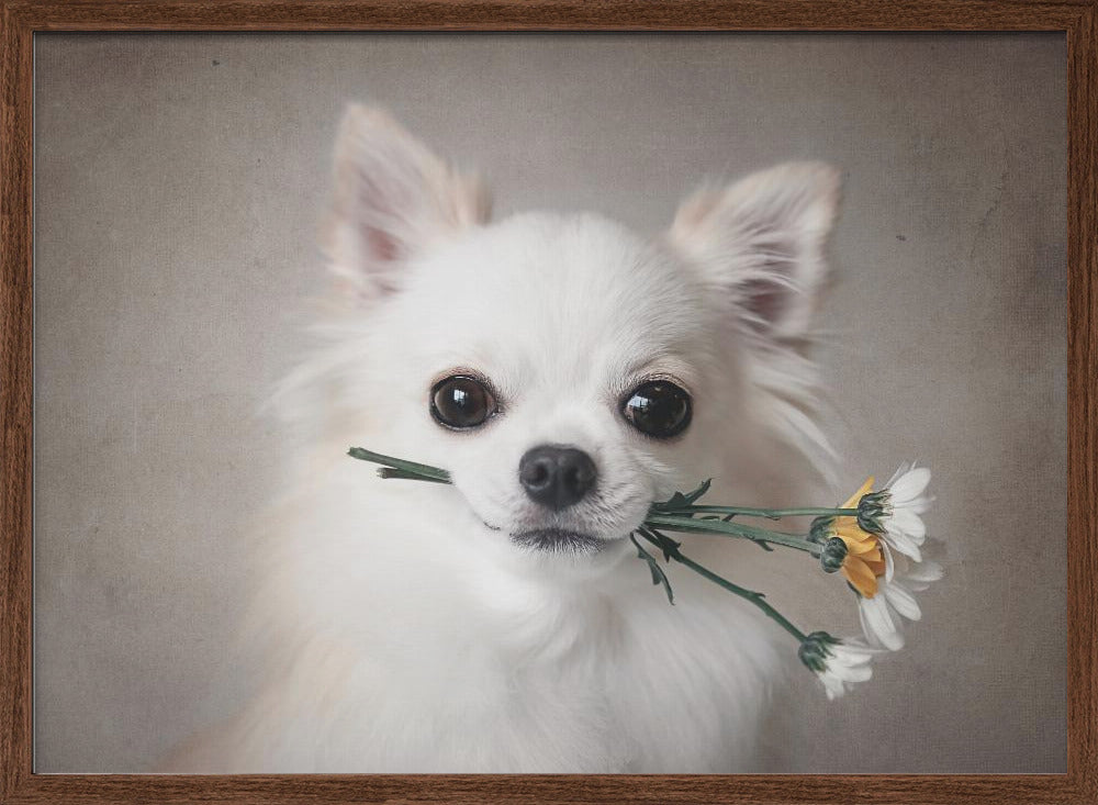 Explore our many print options for Chihuahua with flowers by artist Lienjp.