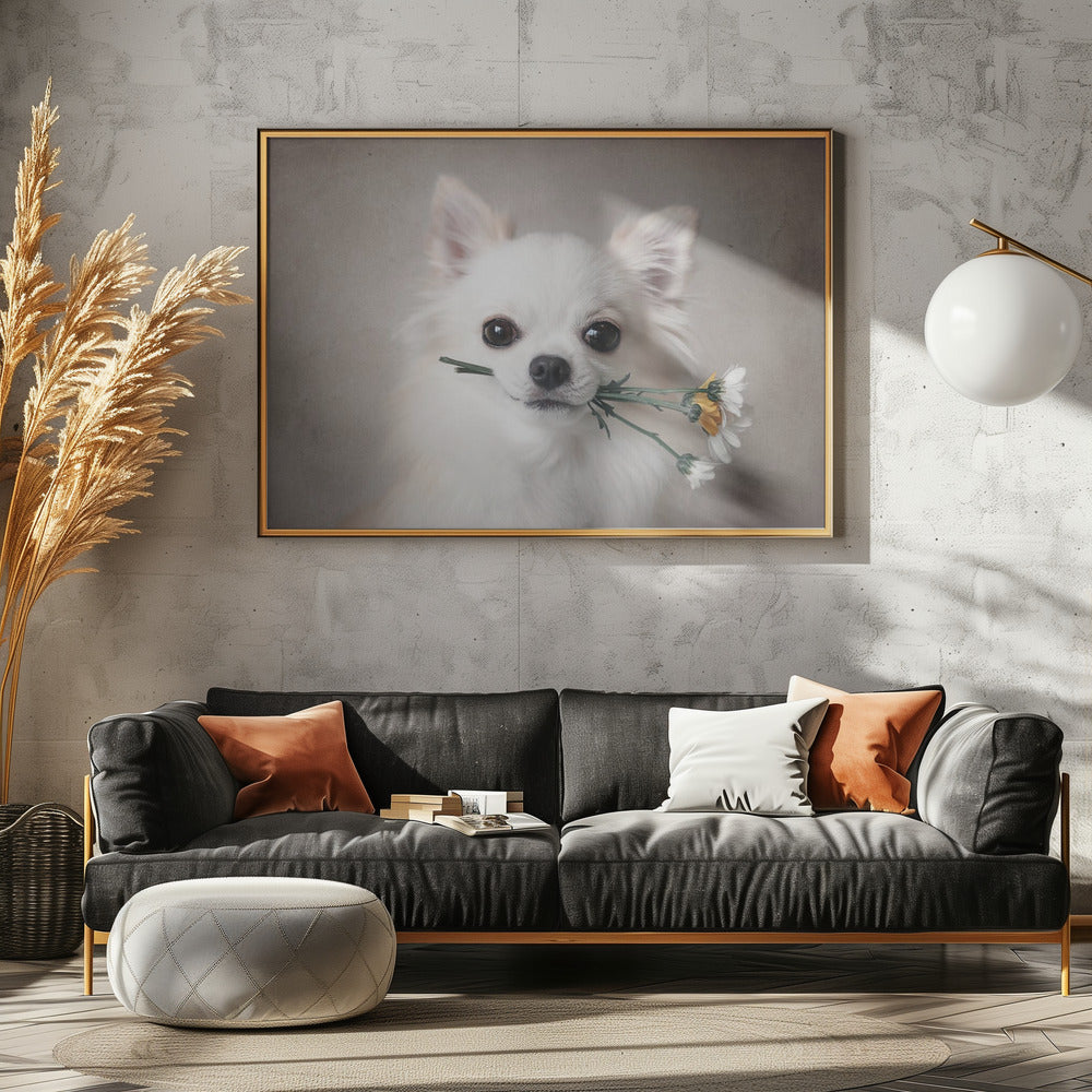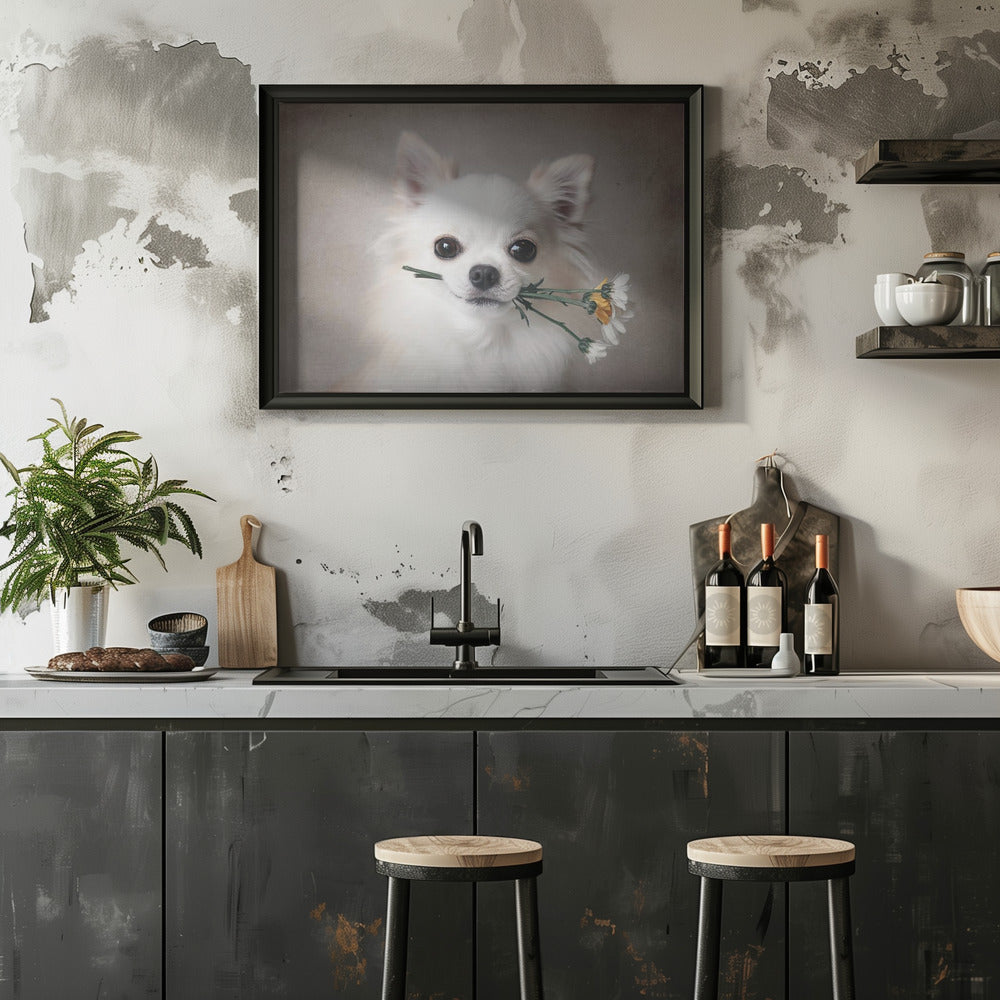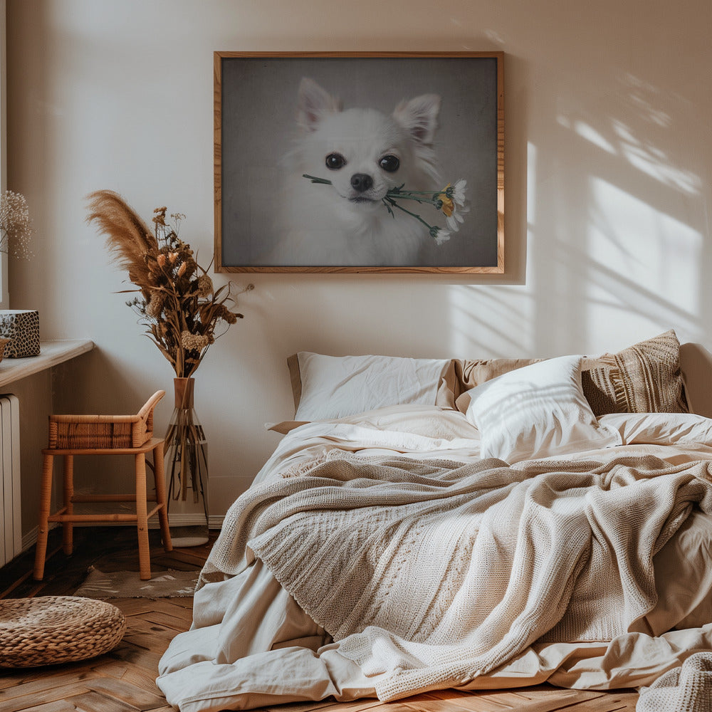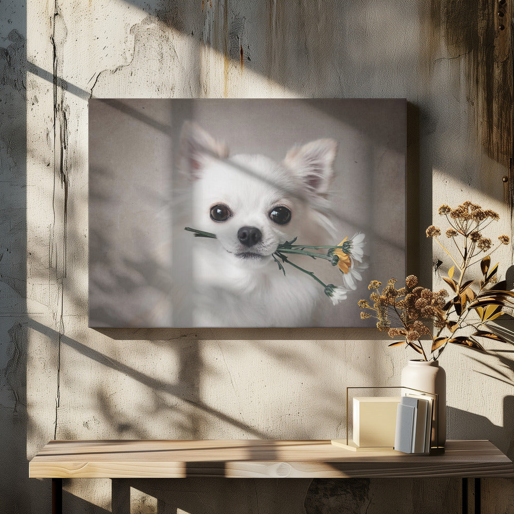 Explore our many print options for Chihuahua with flowers by artist Lienjp.
