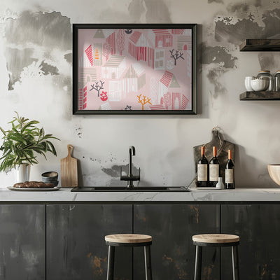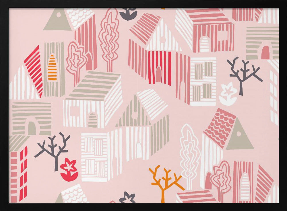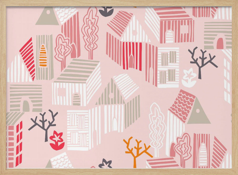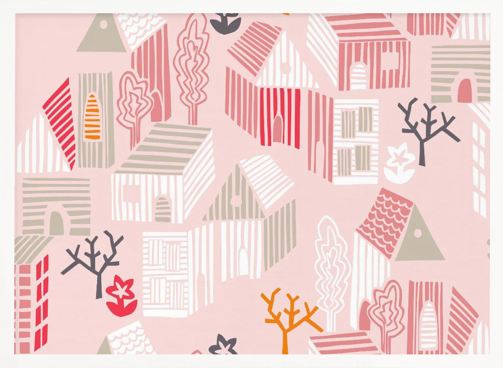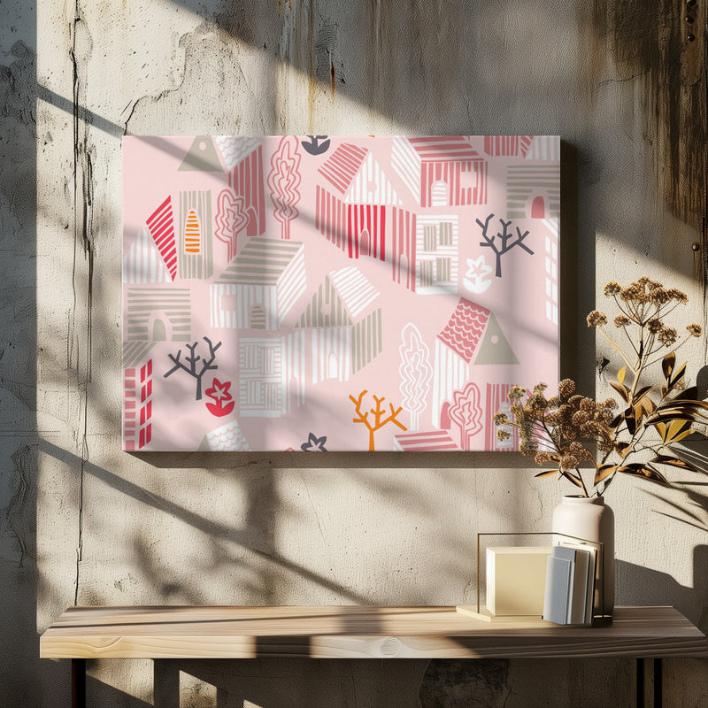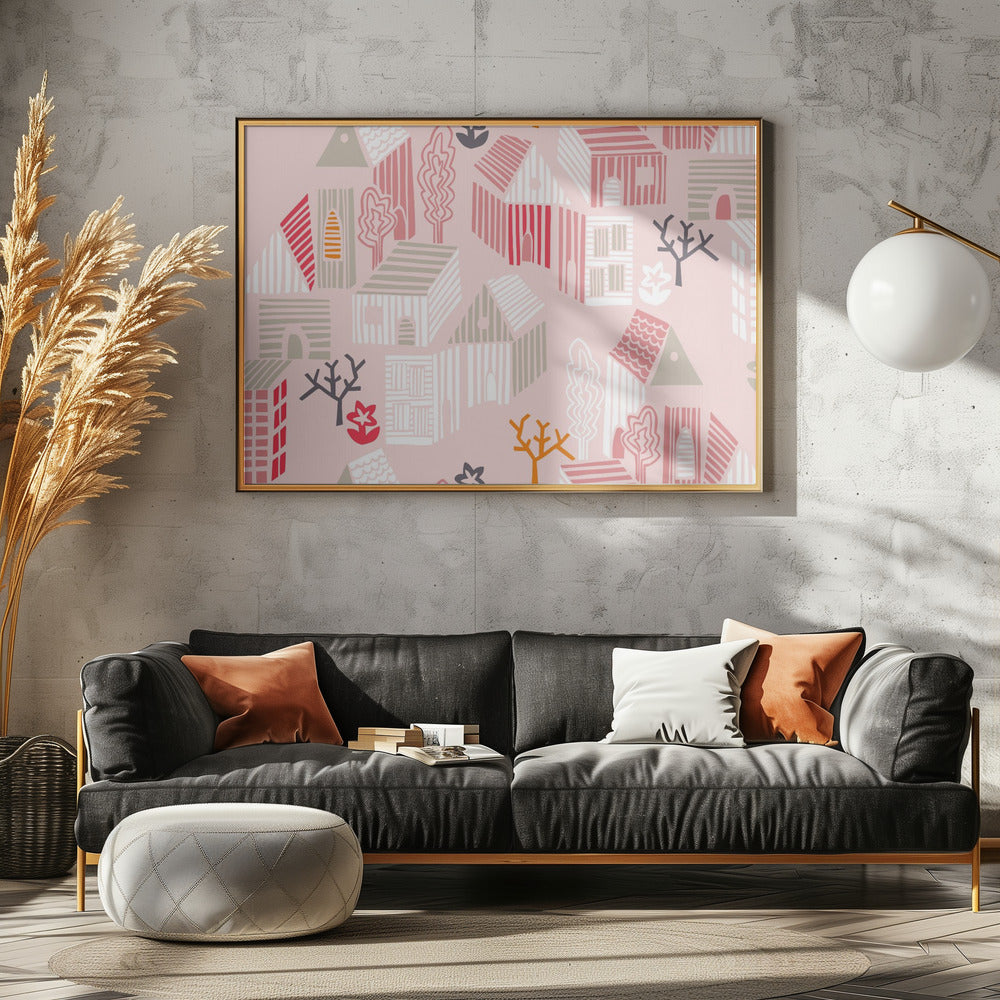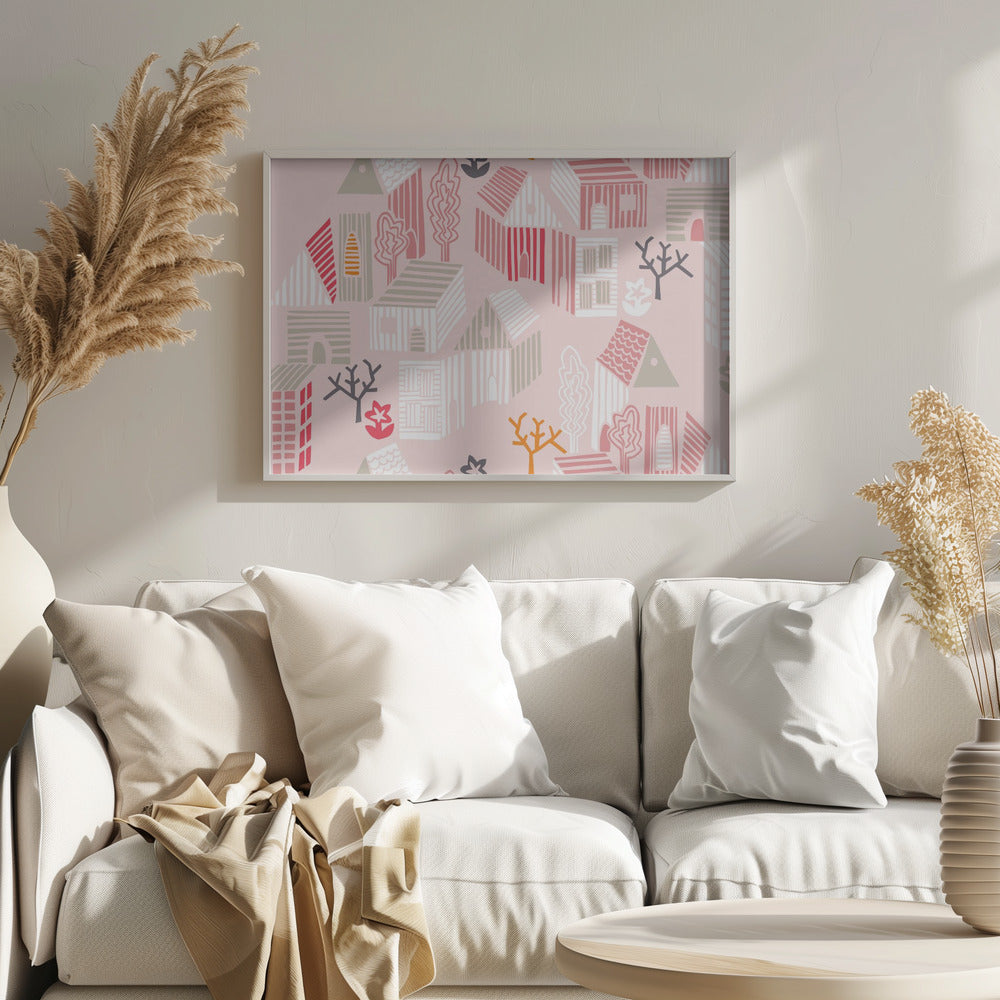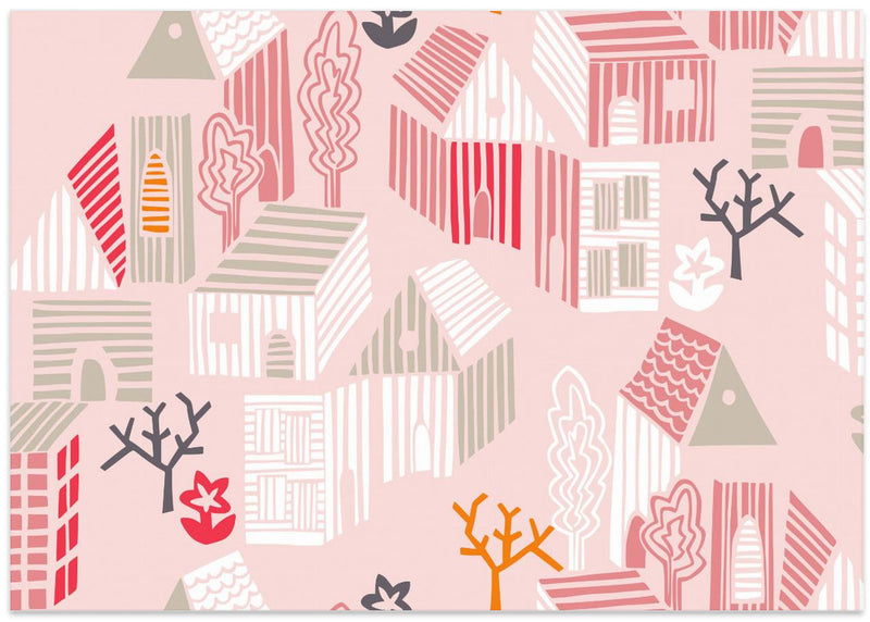 Explore our many print options for City life neighborhood pearl pink pattern by artist Annick.