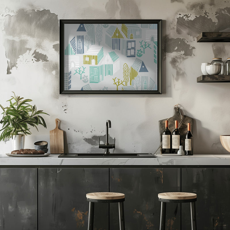 Explore our many print options for City life neighborhood soft grey pattern by artist Annick.