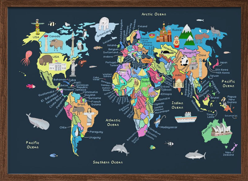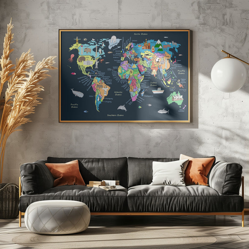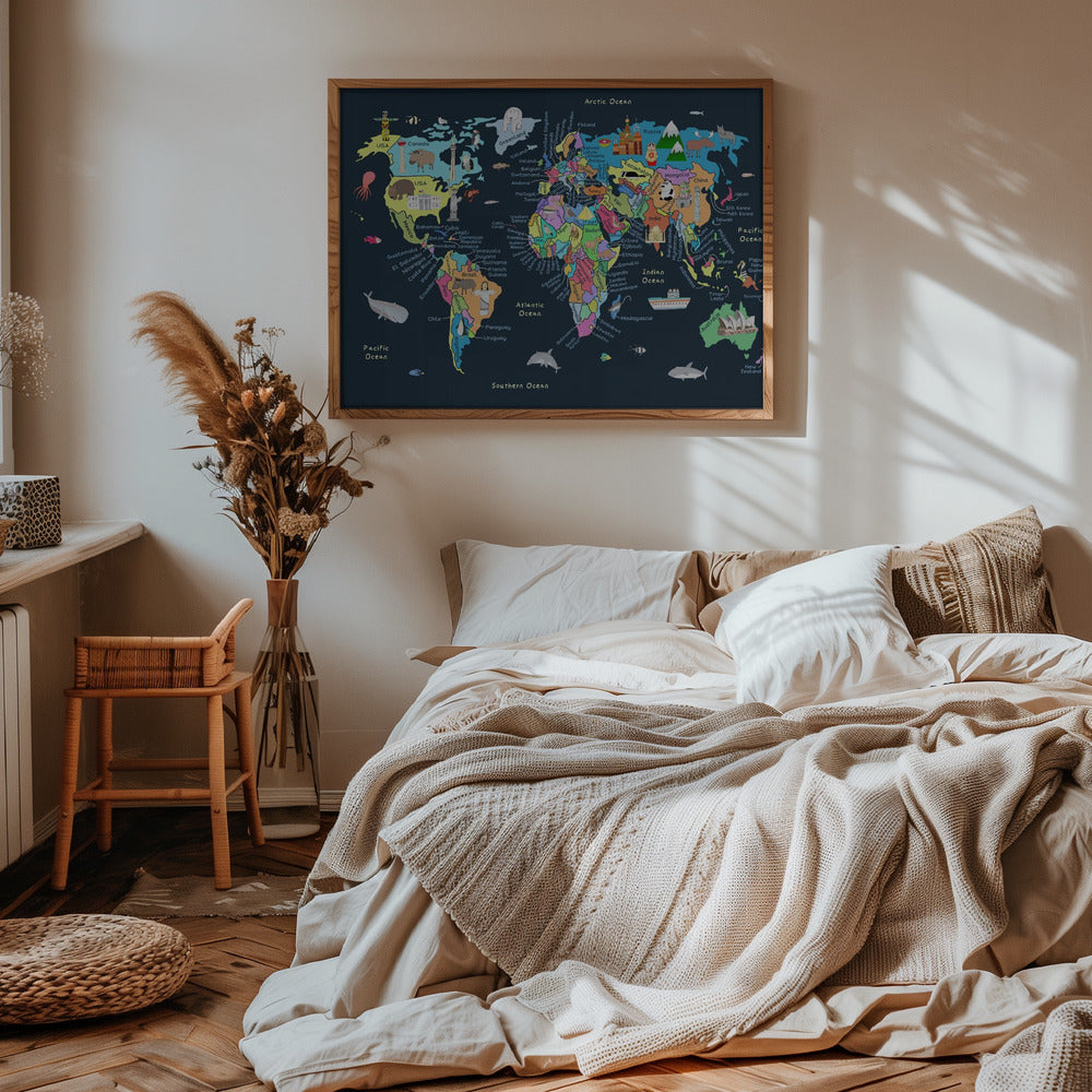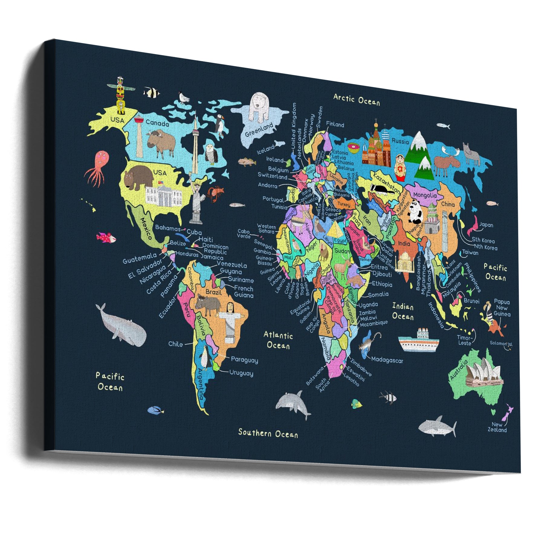 Explore our many print options for Educational Illustrated Map of the World for Kids by artist Carla Daly.