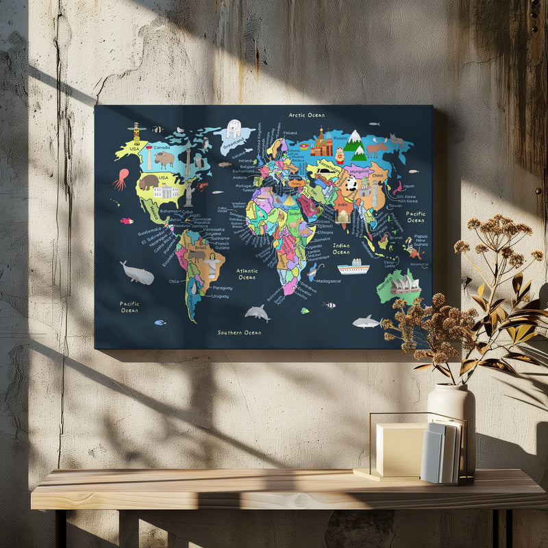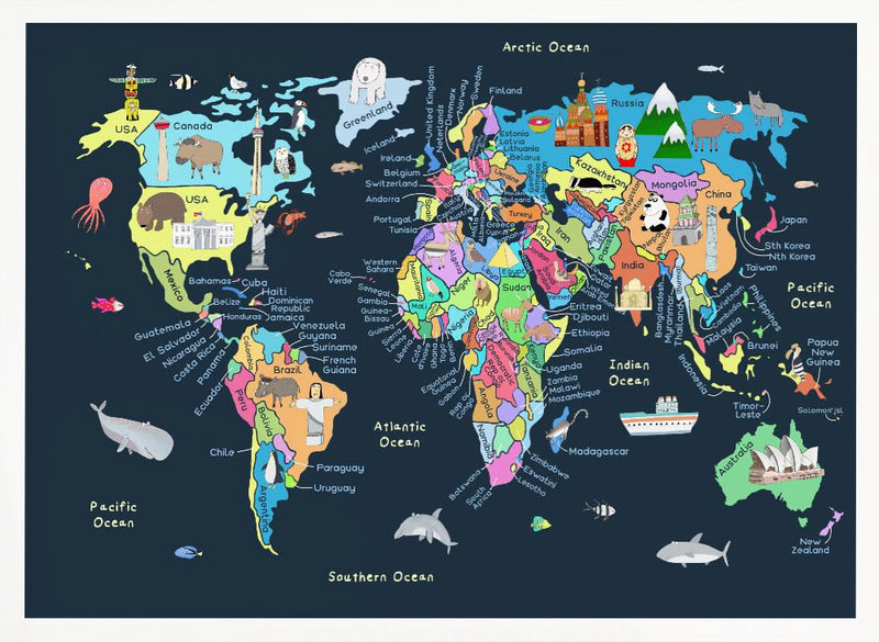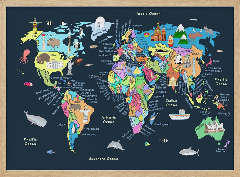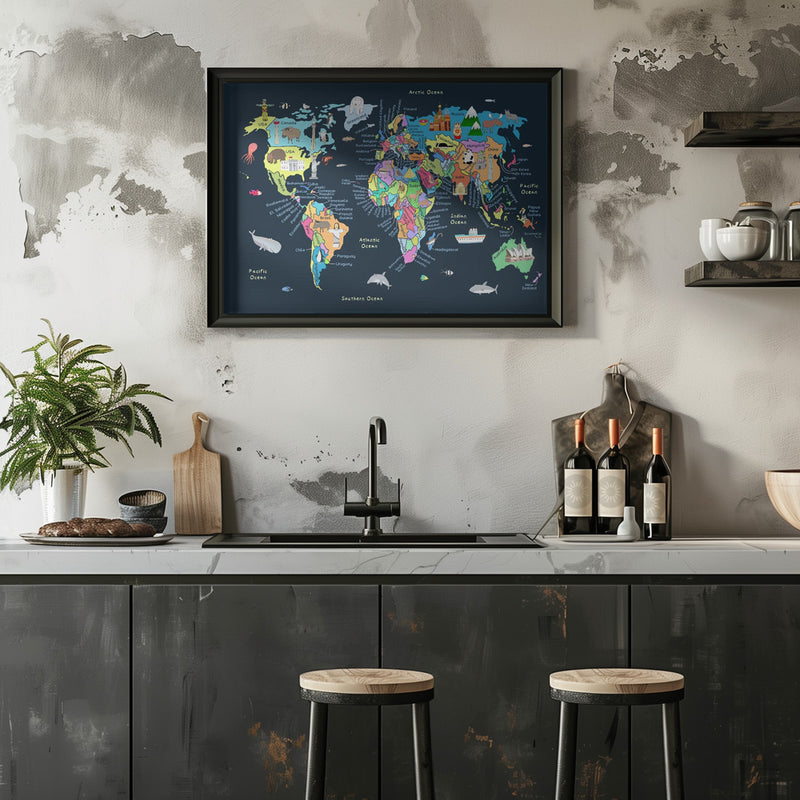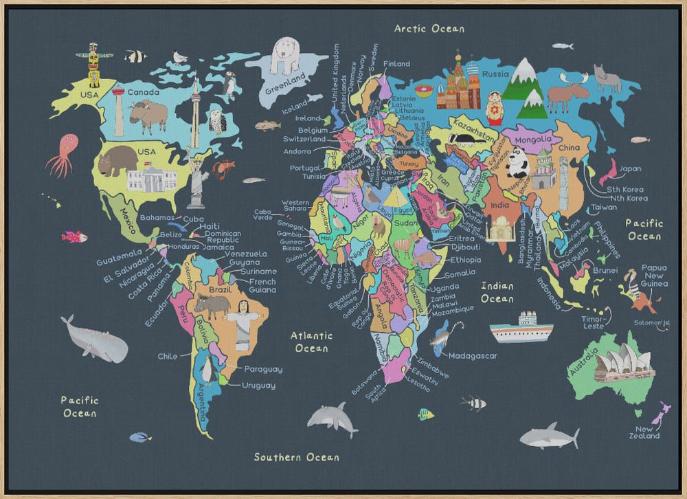 Explore our many print options for Educational Illustrated Map of the World for Kids by artist Carla Daly.
