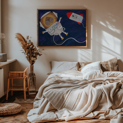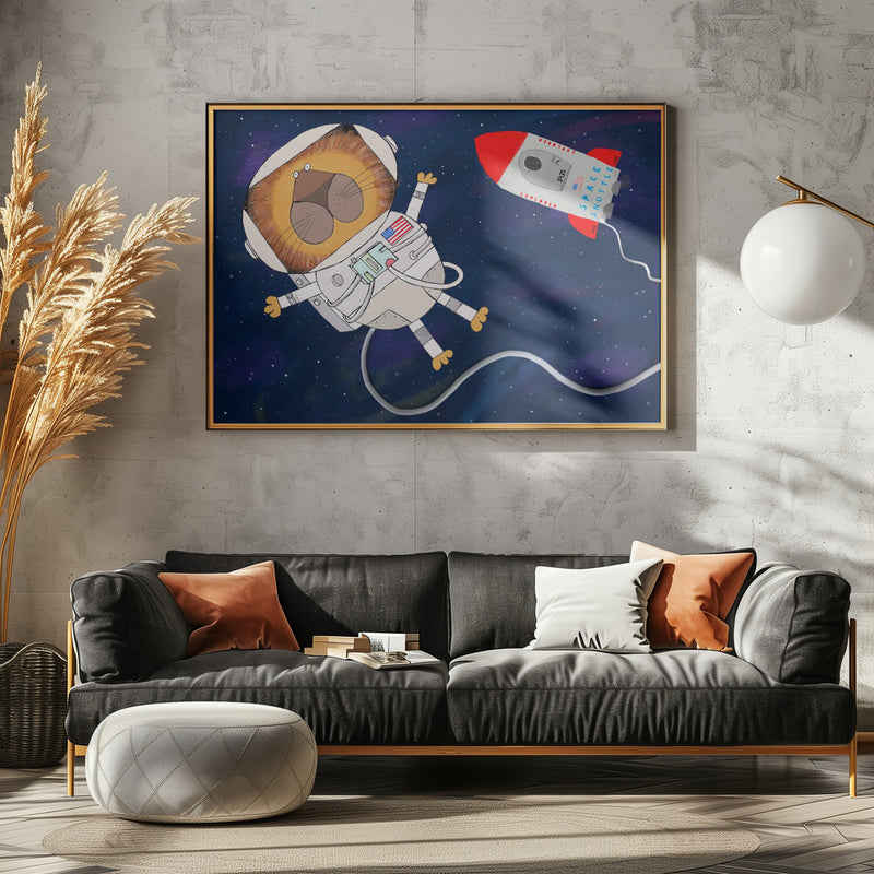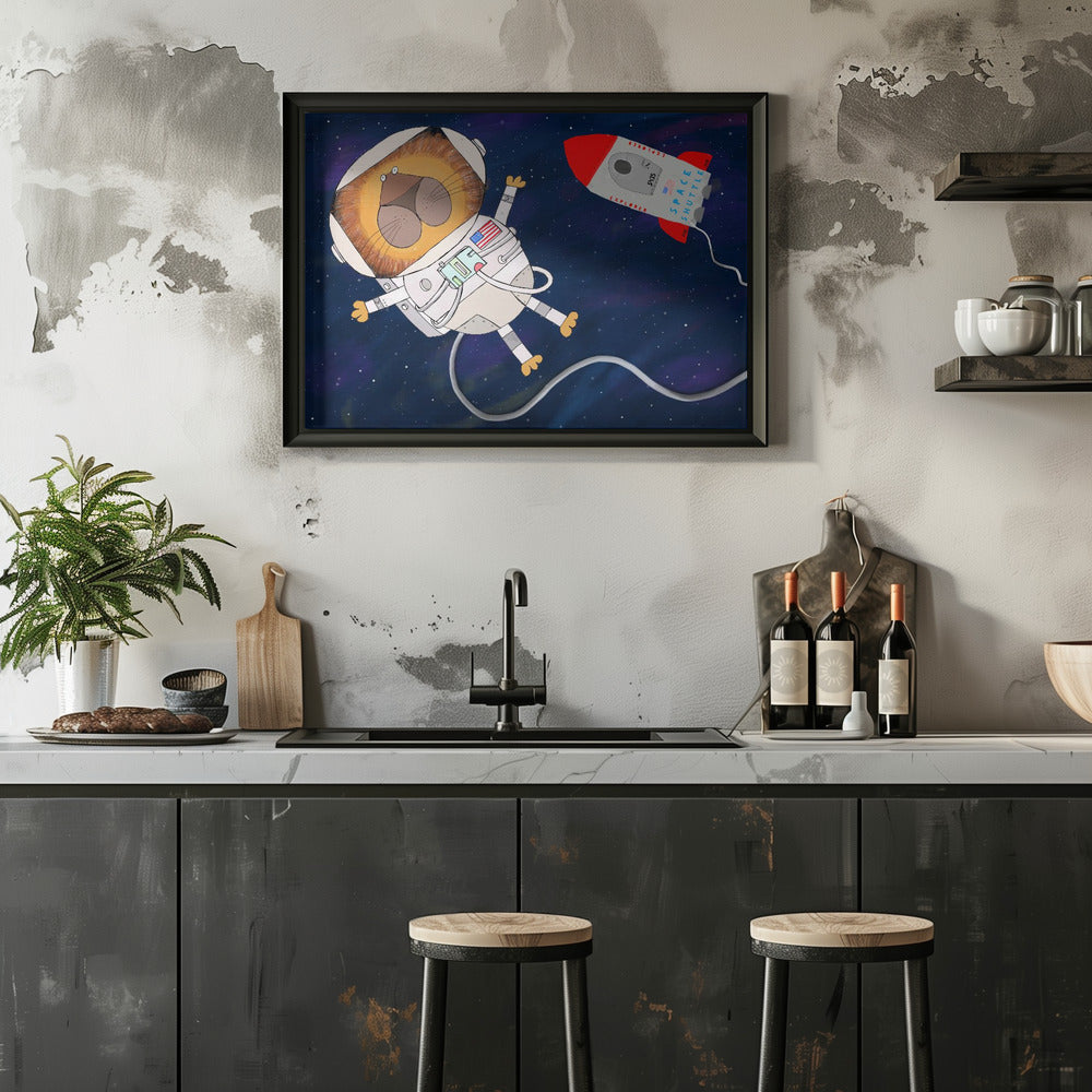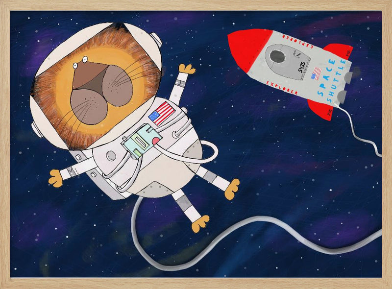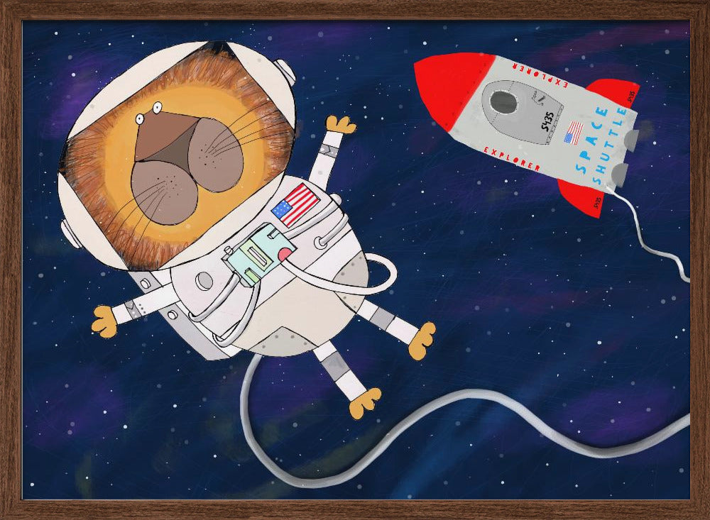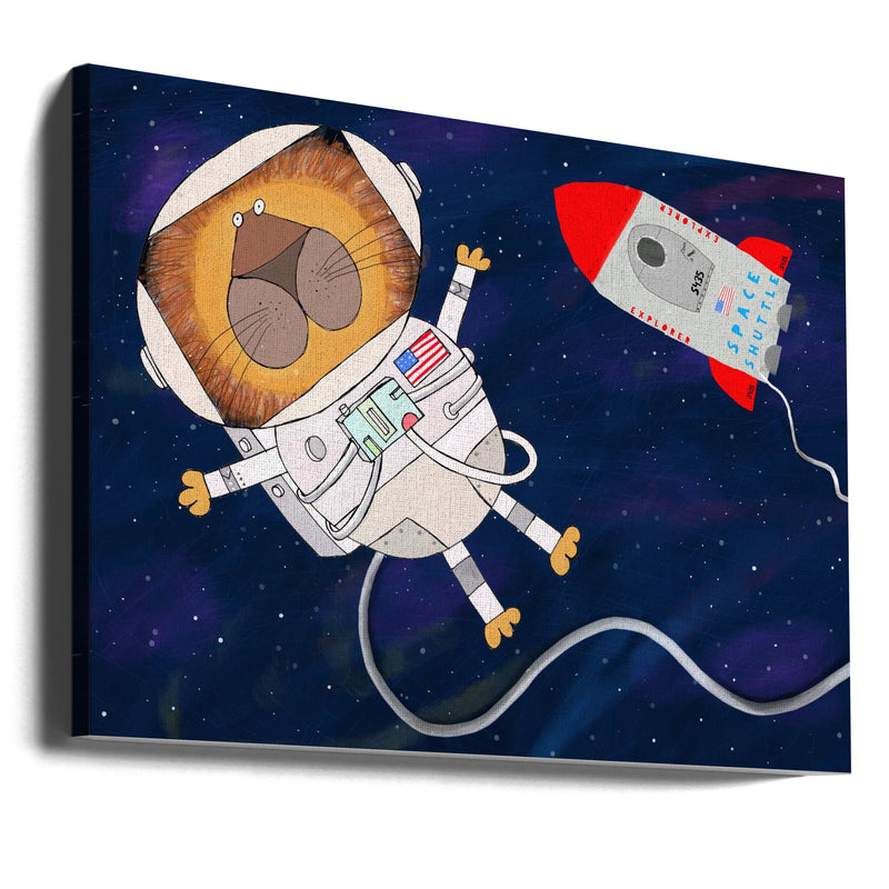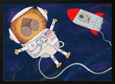 Explore our many print options for Funny Lion Astronaut is Swirling in Space by Artist Carla Daly by artist Carla Daly.