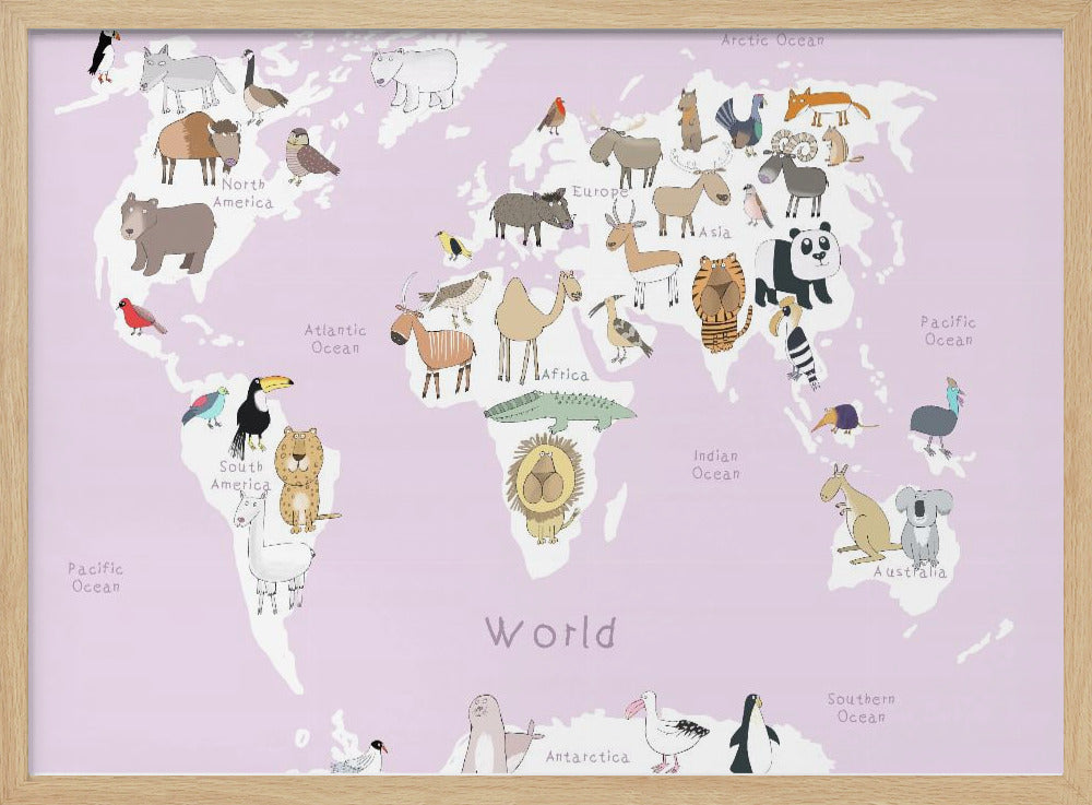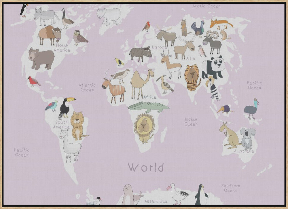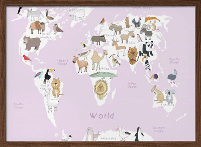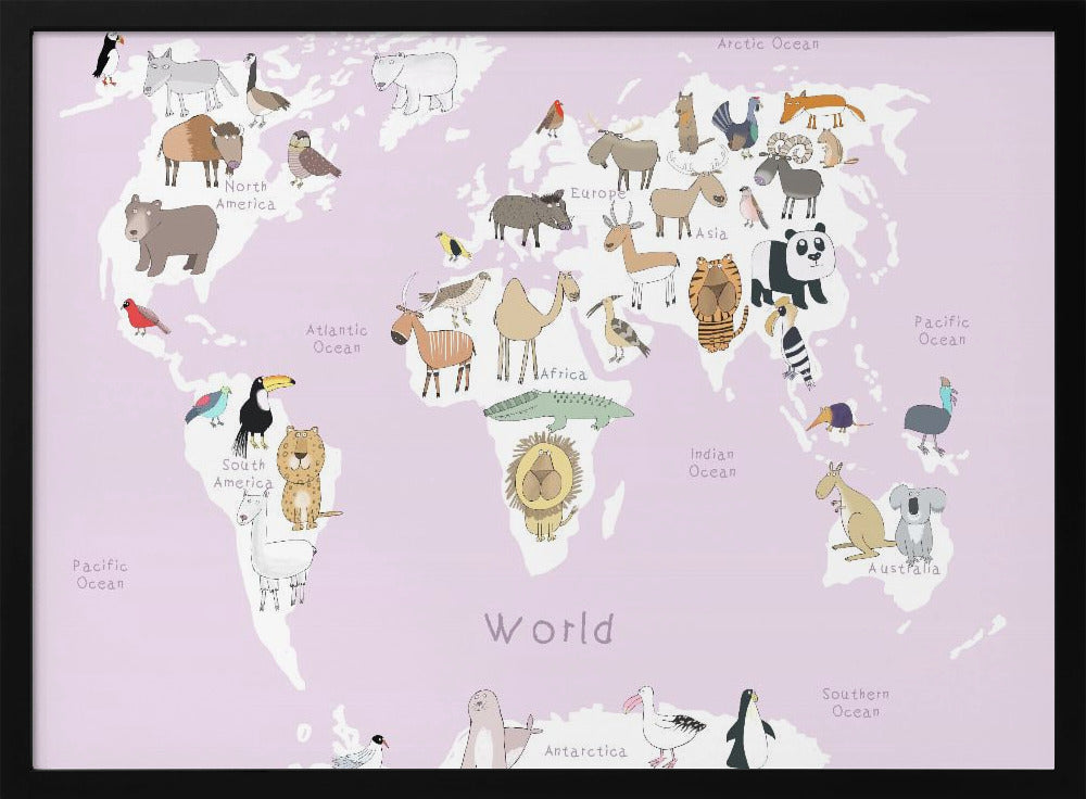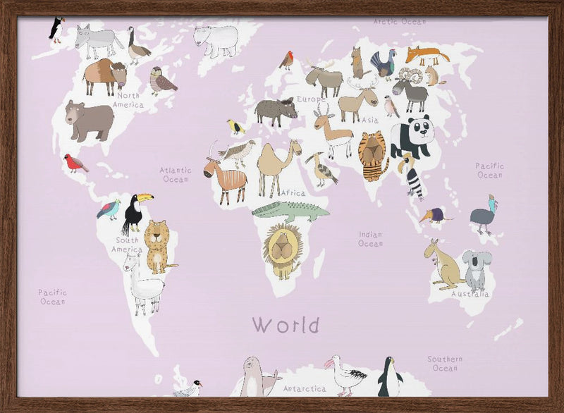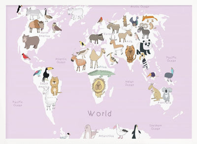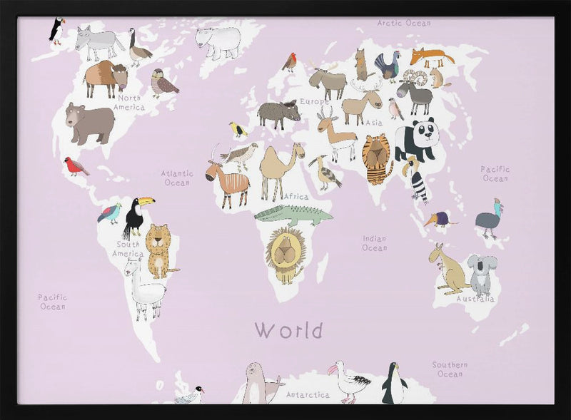 Explore our many print options for Illustrated Map of the World with Cute Animals by artist Carla Daly.