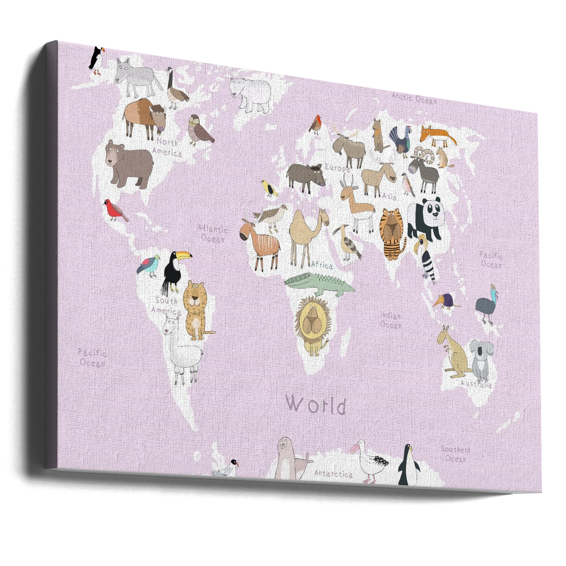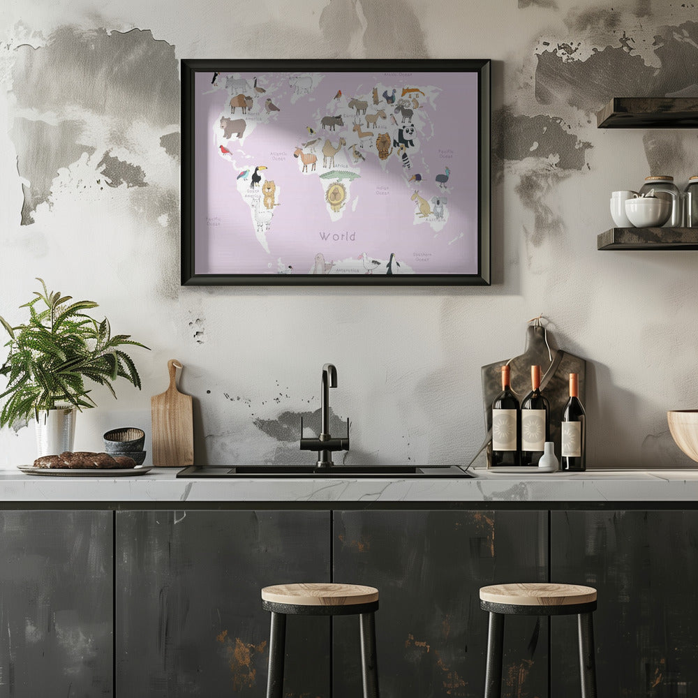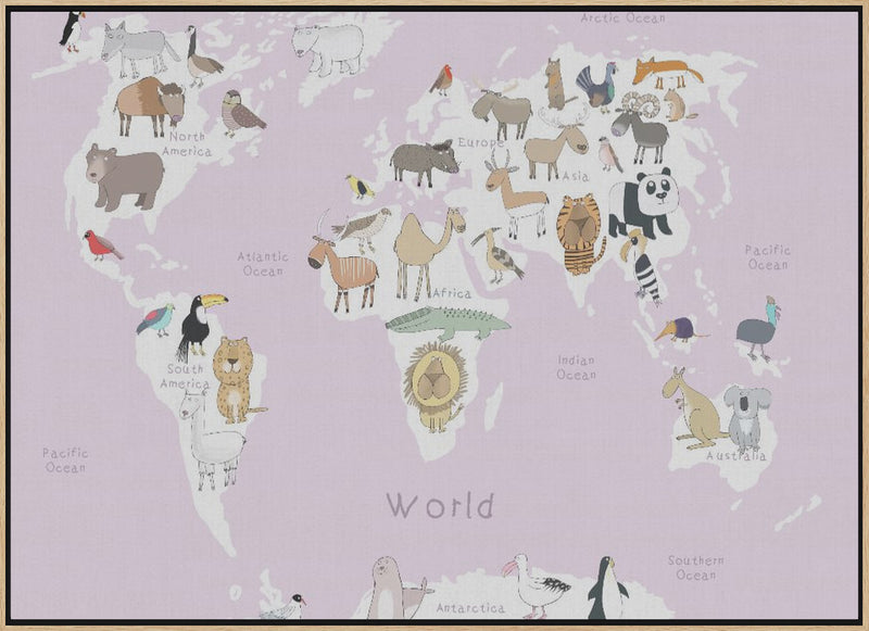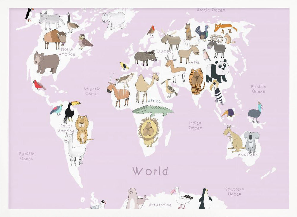 Explore our many print options for Illustrated Map of the World with Cute Animals by artist Carla Daly.