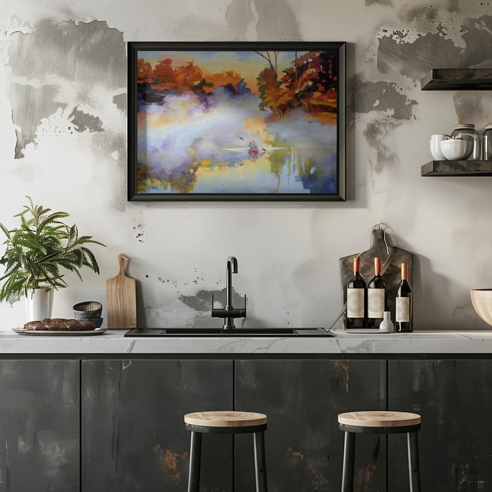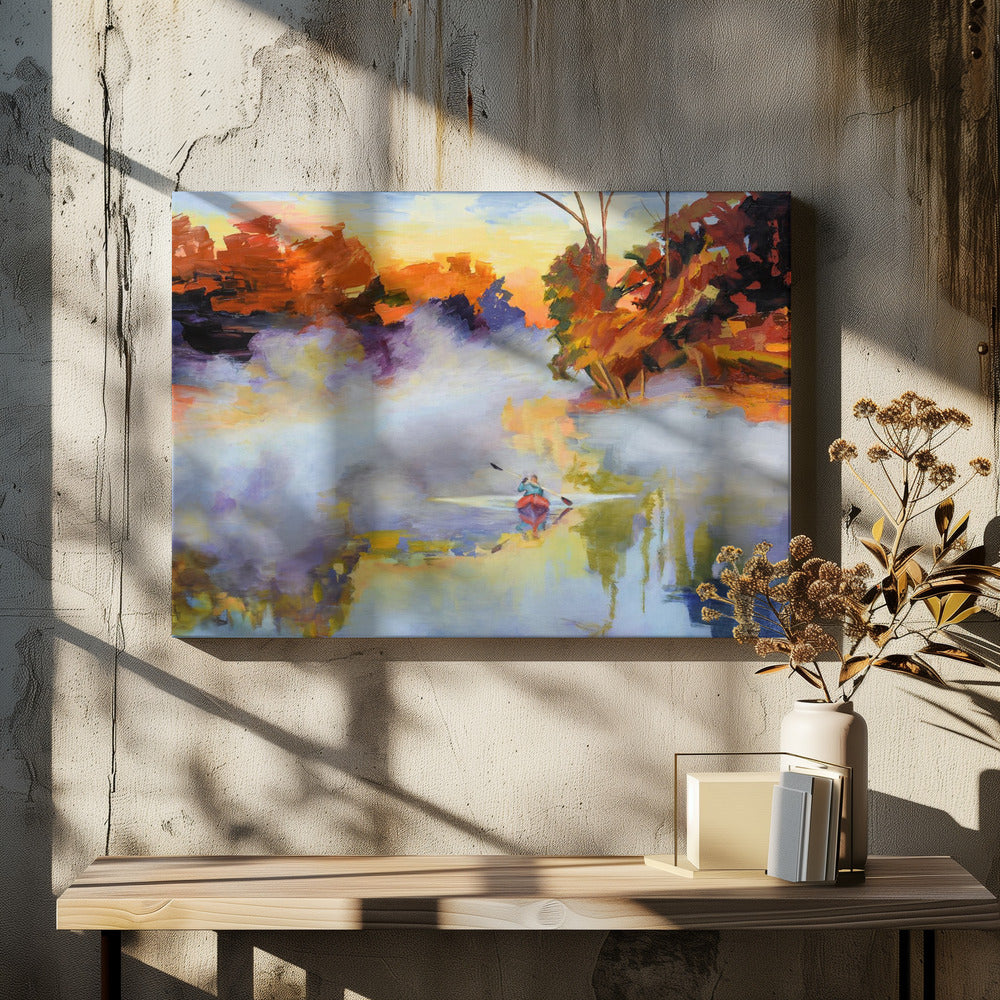 Explore our many print options for Paddling In the Mist by artist Maxine Shore.