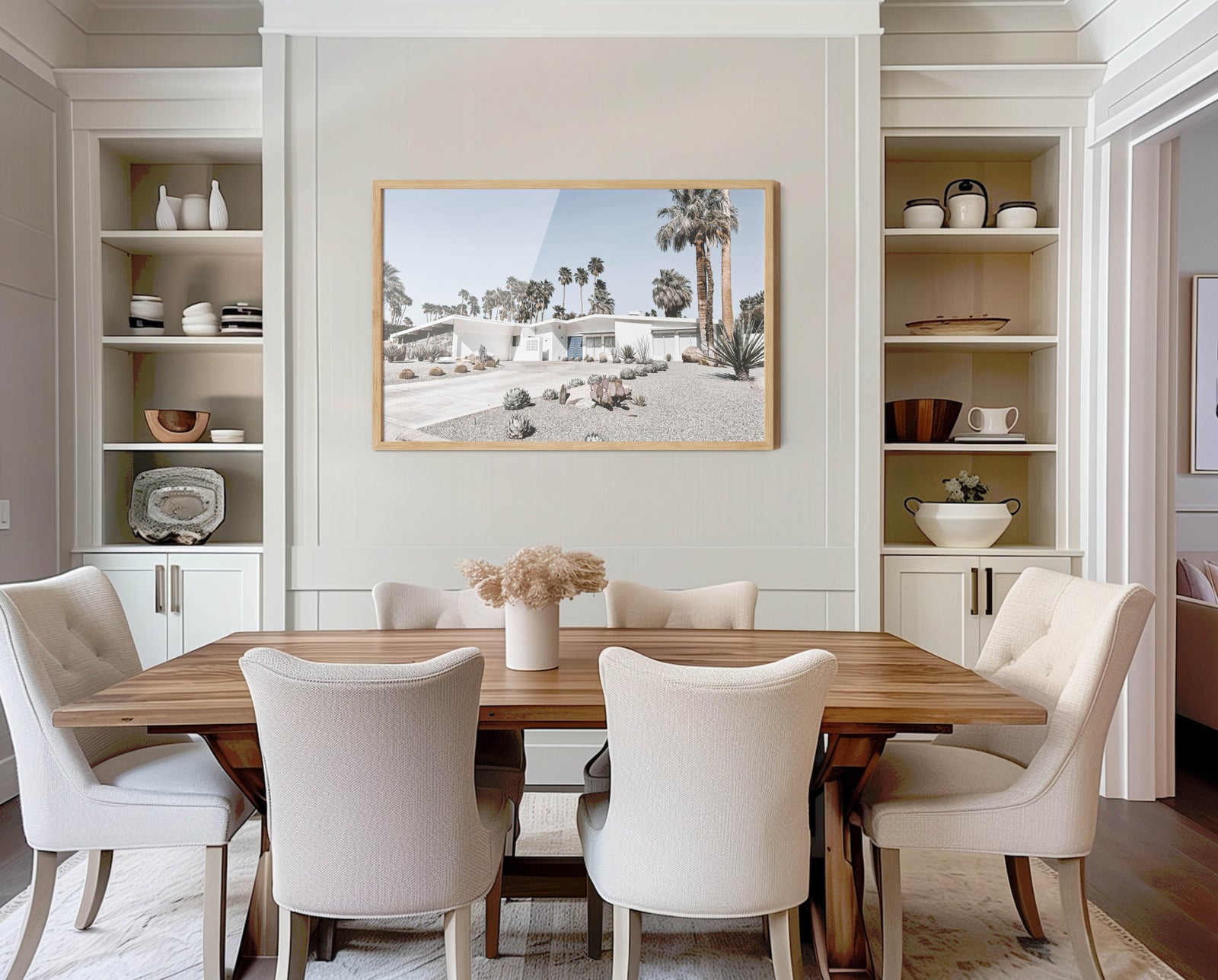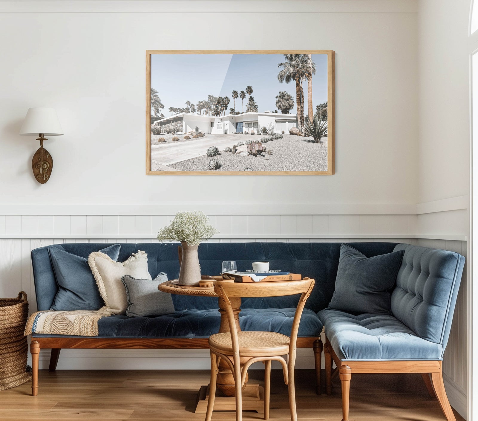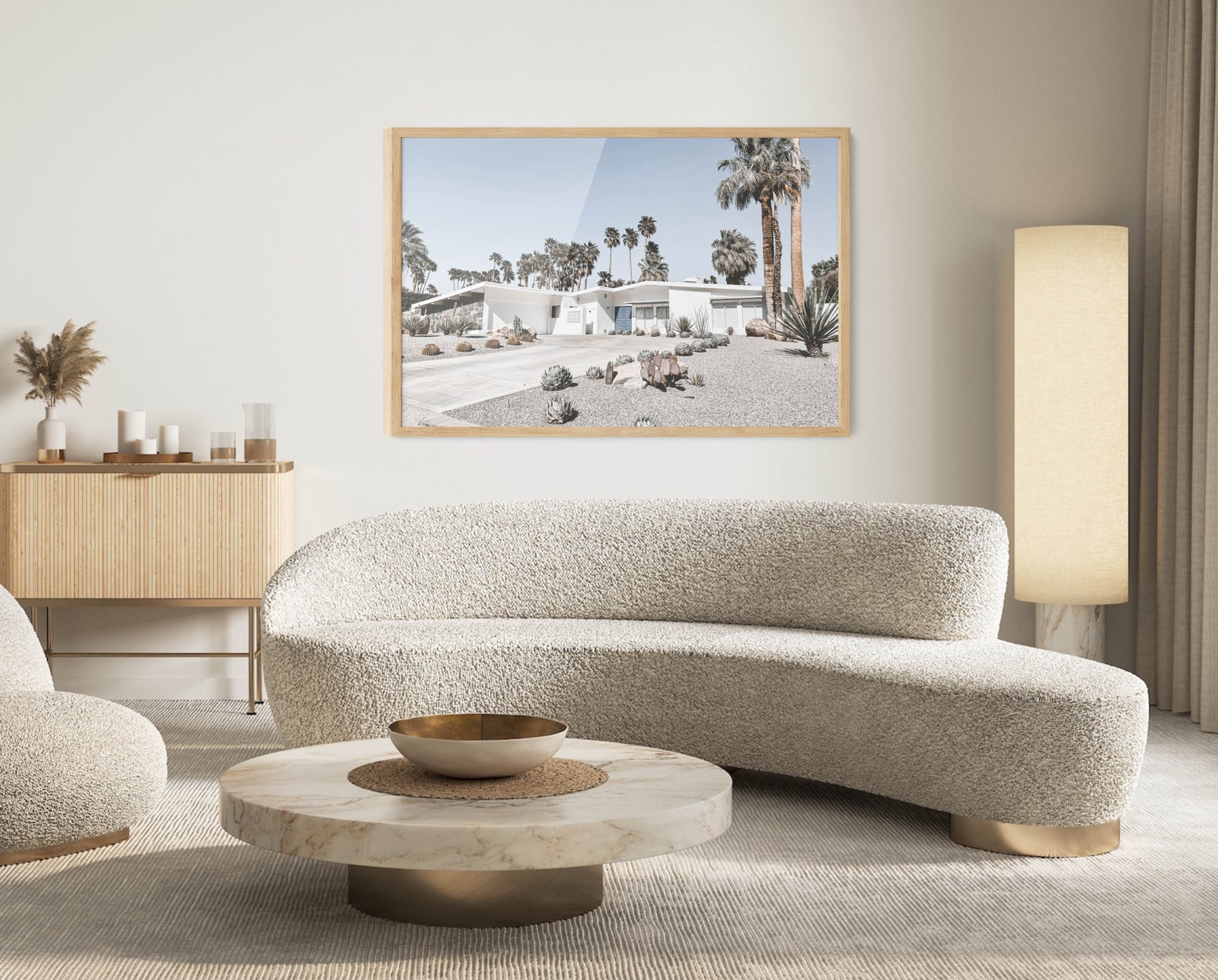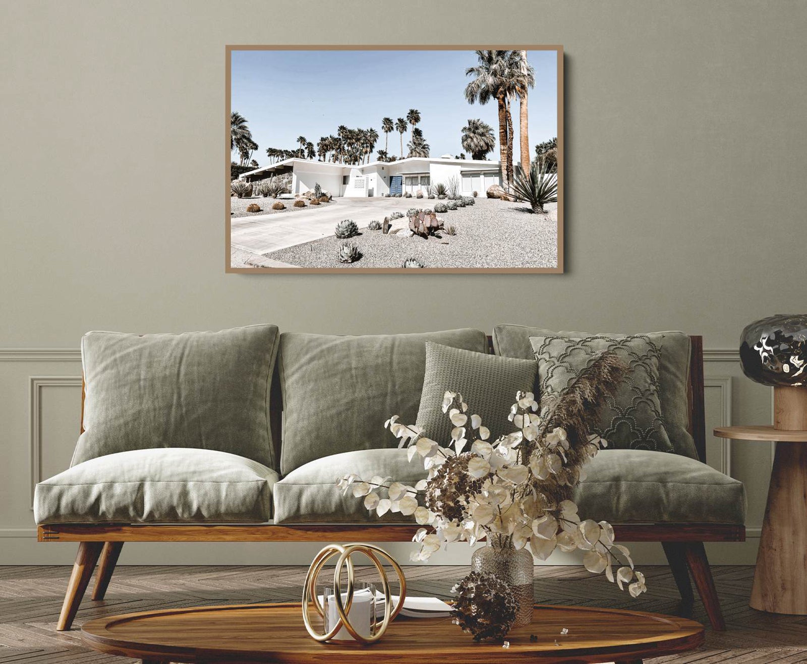 A contemporary print of Palm Springs in a washed-out colour palette - perfect for interior home styling.