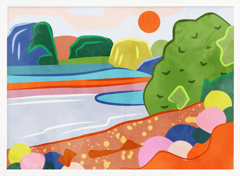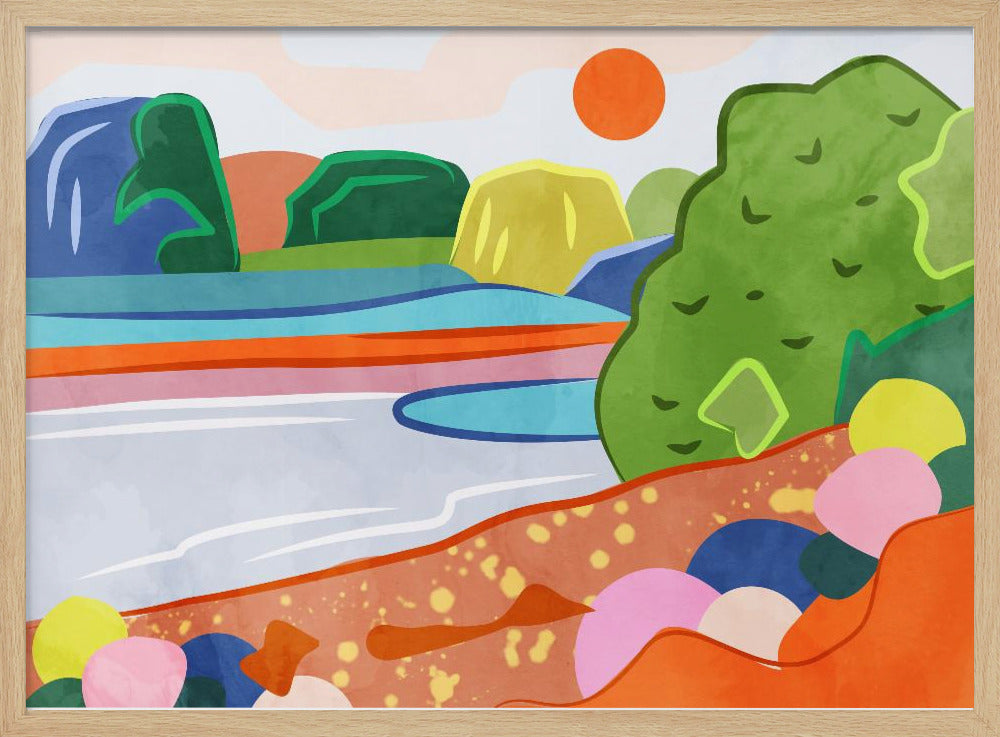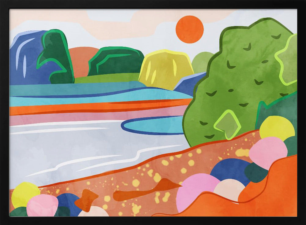 Framed Art Prints: Our framed art prints are printed onto a good quality textured art paper. A white border surrounds the design. A solid timber frame in one of four colours and a plexiglass front complete the piece.