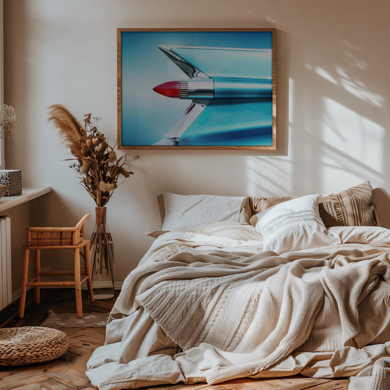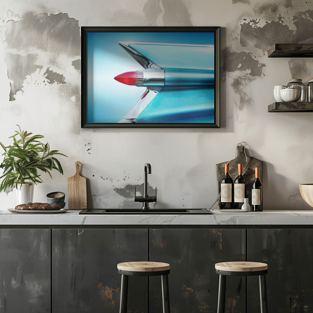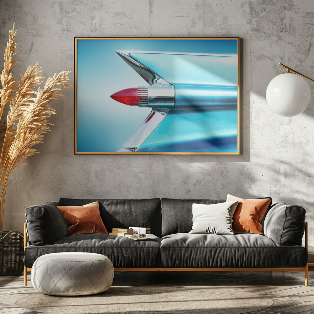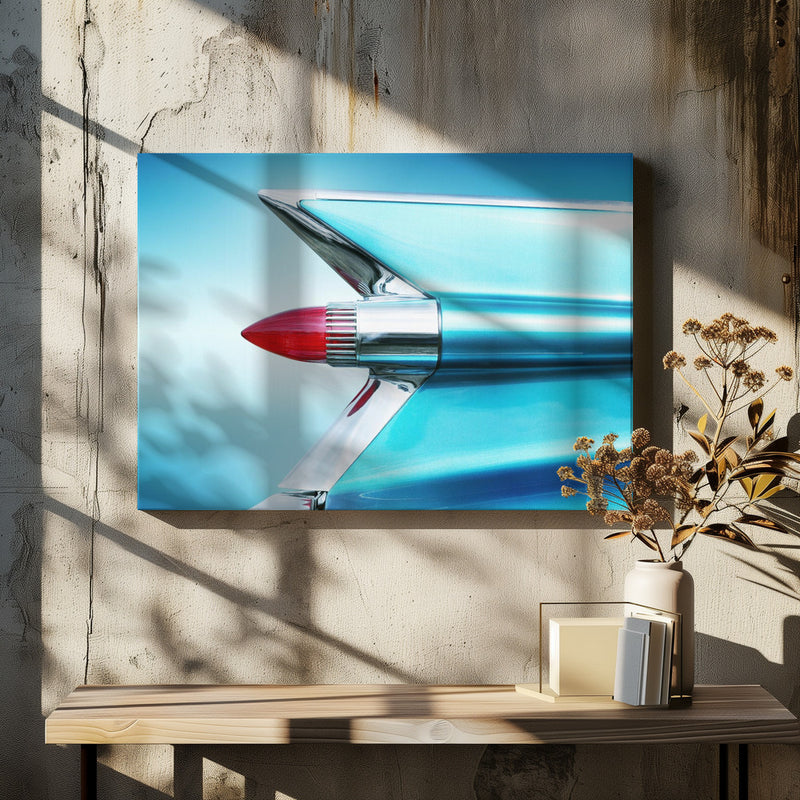 Explore our many print options for US classic car 1959 Sedan Deville tail fin abstract by artist Beate Gube.