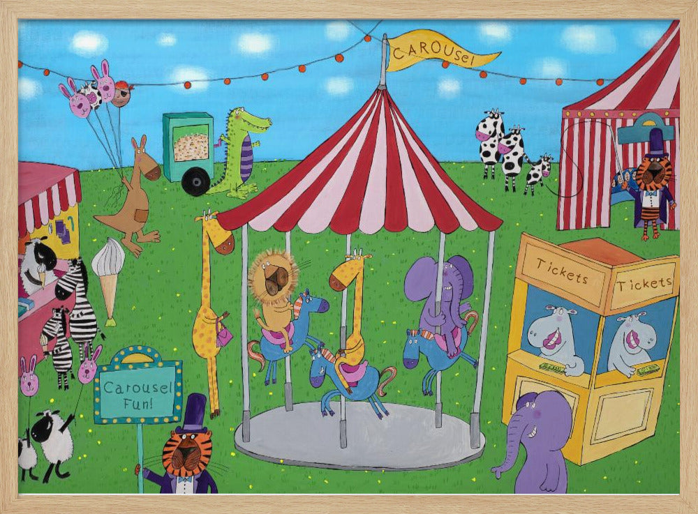 Explore our many print options for Welcome to the Carousel with Funny Animals by Artist Carla Daly by artist Carla Daly.