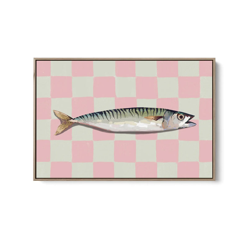 This fun still life featuring a single sardine is the latest piece in our contemporary still life artwork collection by the I Heart Wall Art artists collective, Left By The Sand.