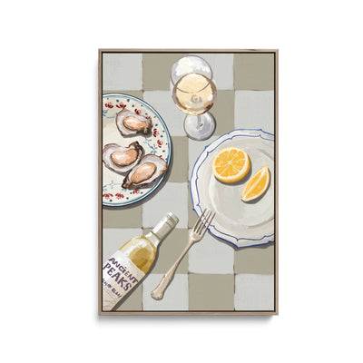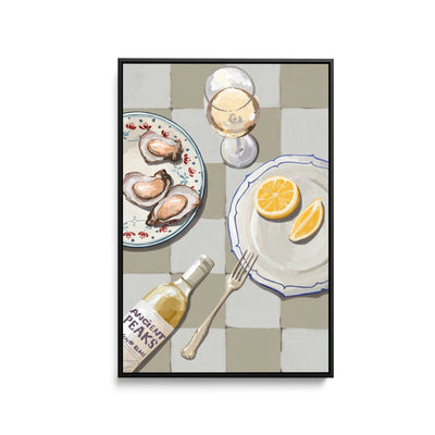 This fun summer-inspired still life featuring oysters and beer is the latest piece in our contemporary still life artwork collection by the I Heart Wall Art artists collective, Left By The Sand.