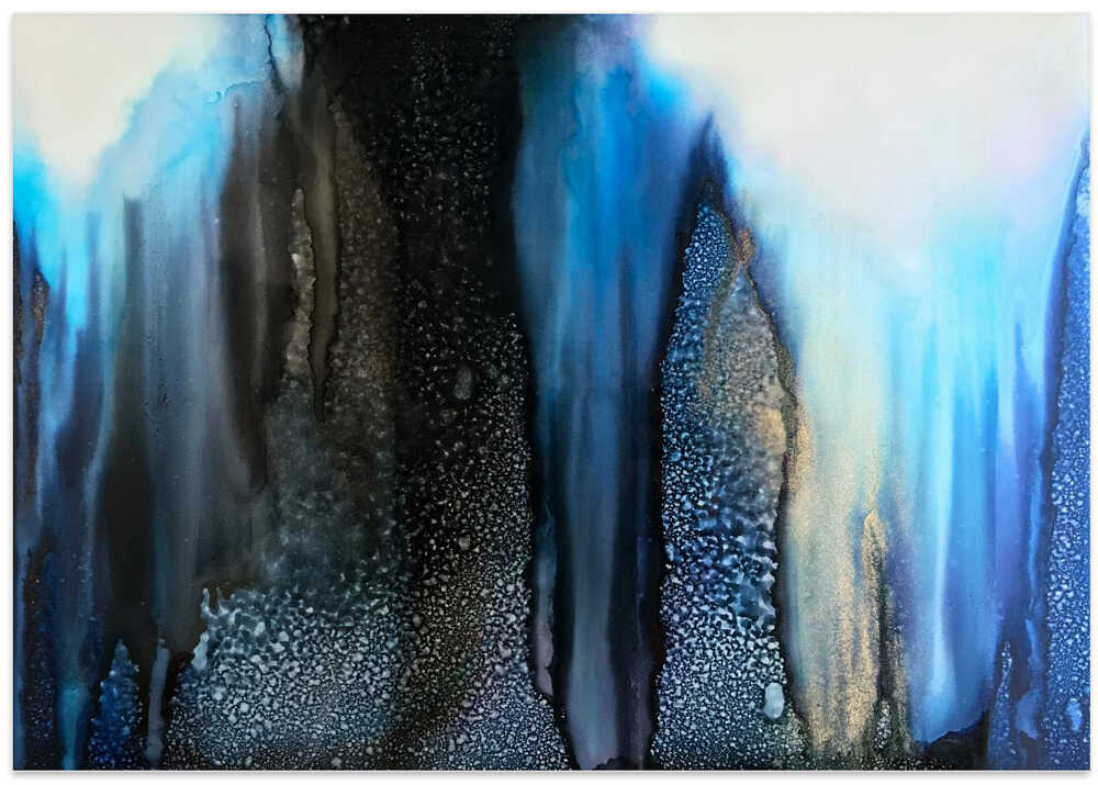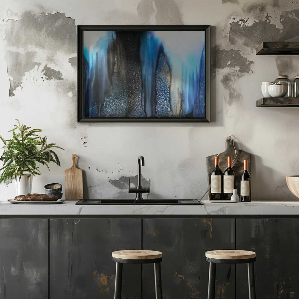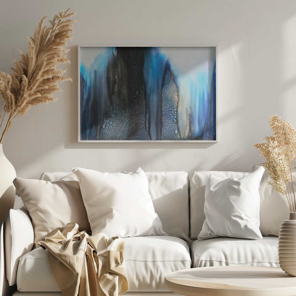 Explore our many print options for Abstract Blue Depths by artist Alyson Storms.
