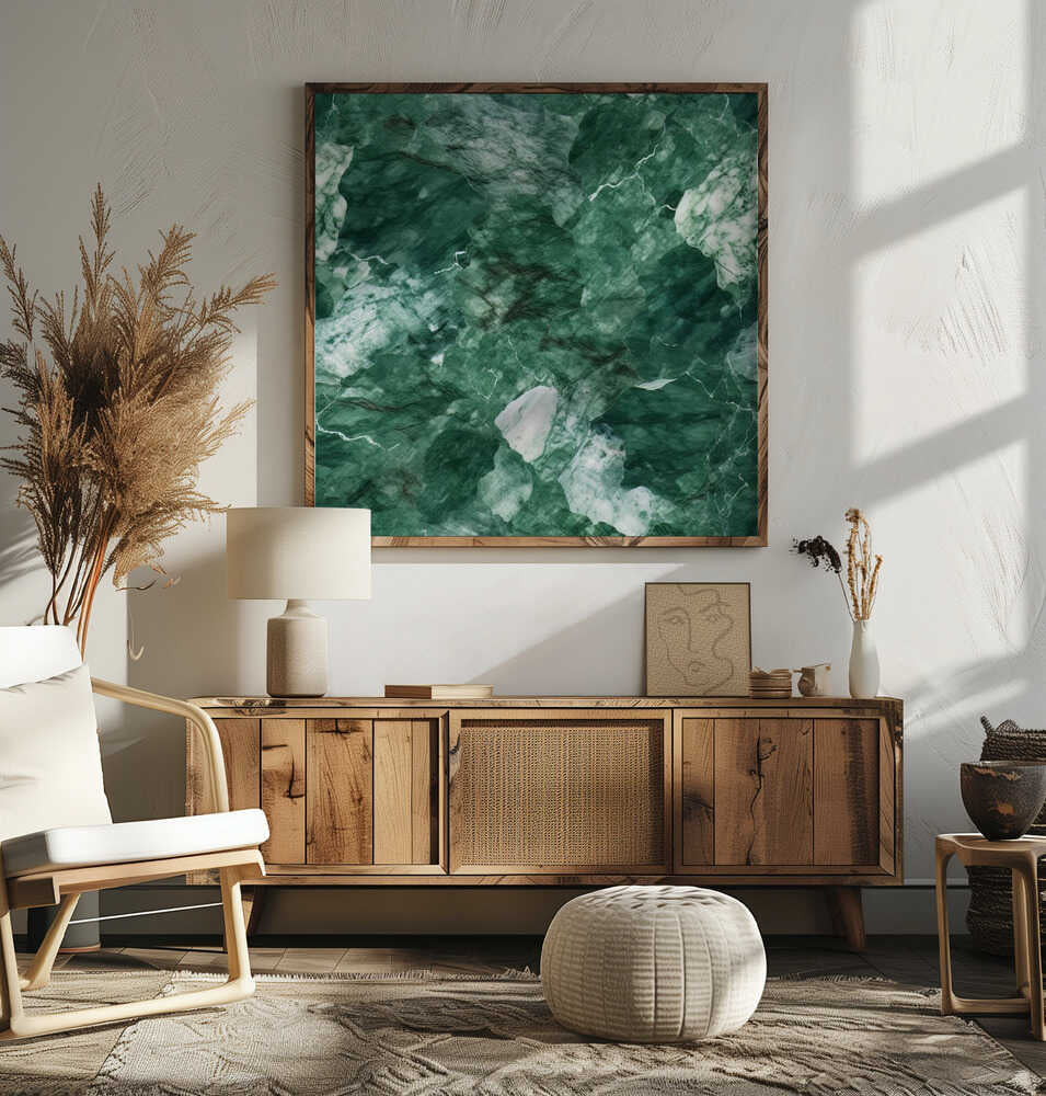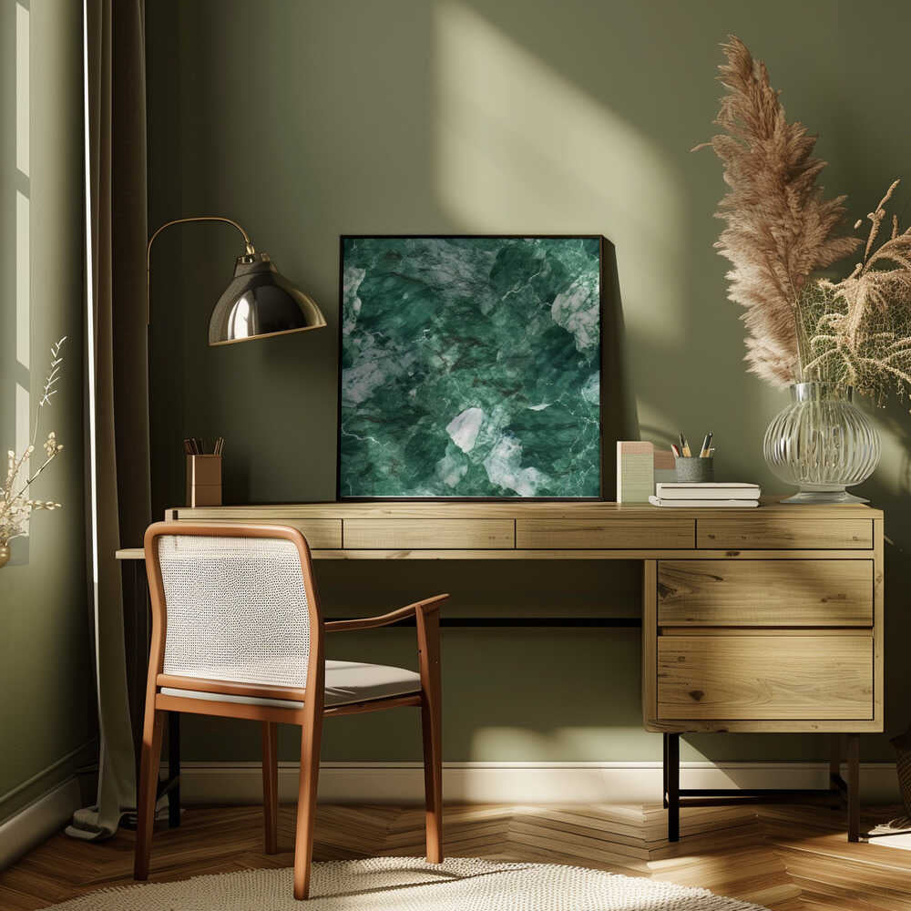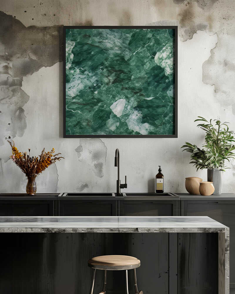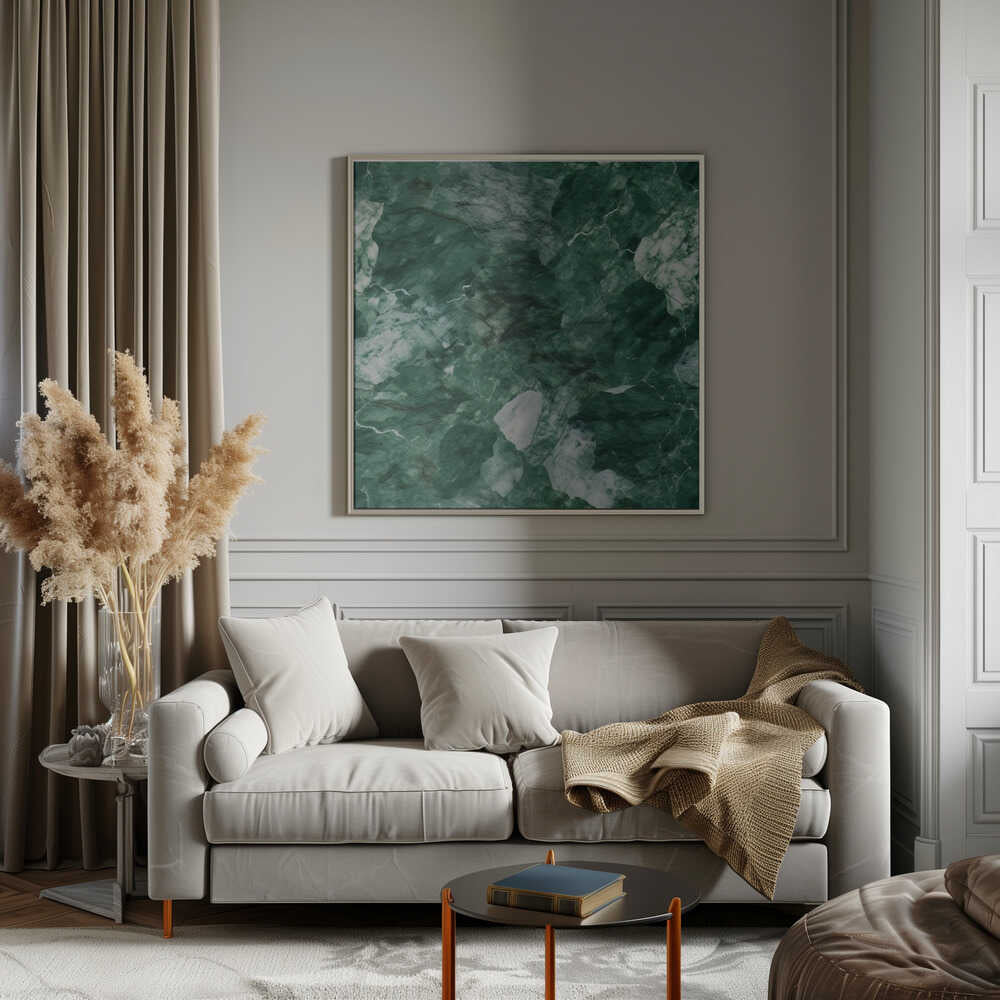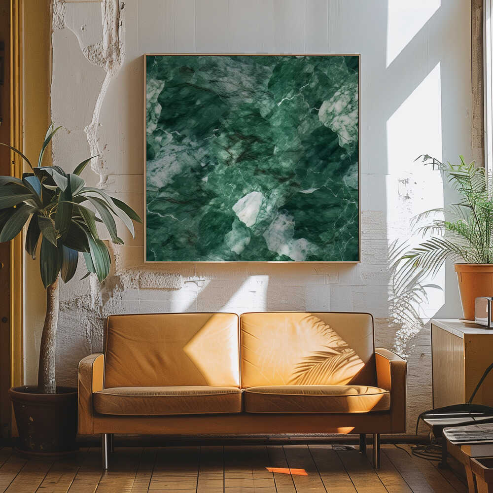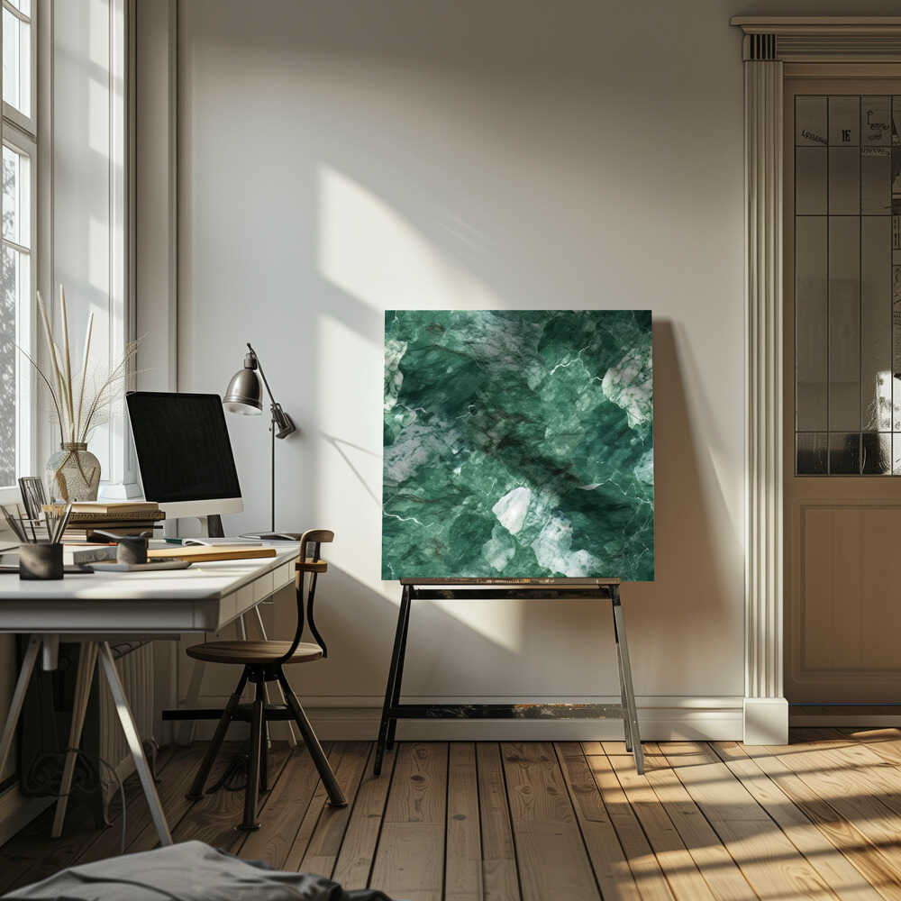 Abstract Green Marble - Square Stretched Canvas, Poster or Fine Art Print