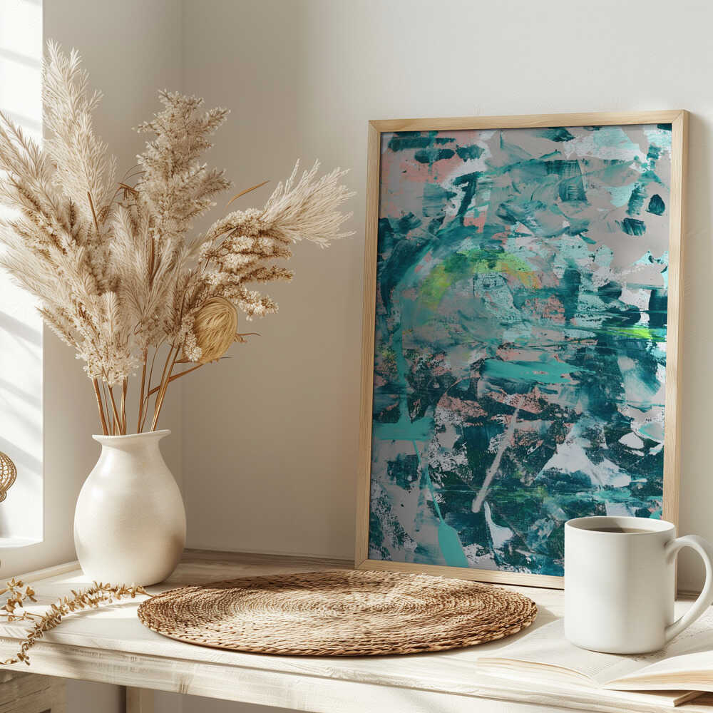 Unwind - Blue and Gree Abstract Alcohol Ink Wall Art Print