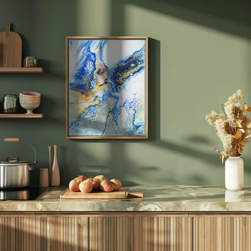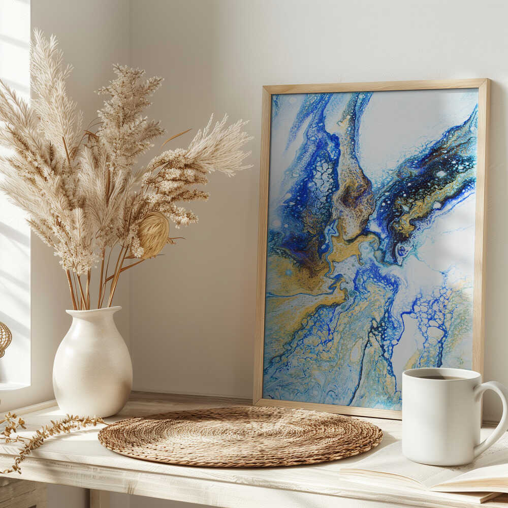 Explore our many print options for Golden Blue Flow by artist Alyson Storms.