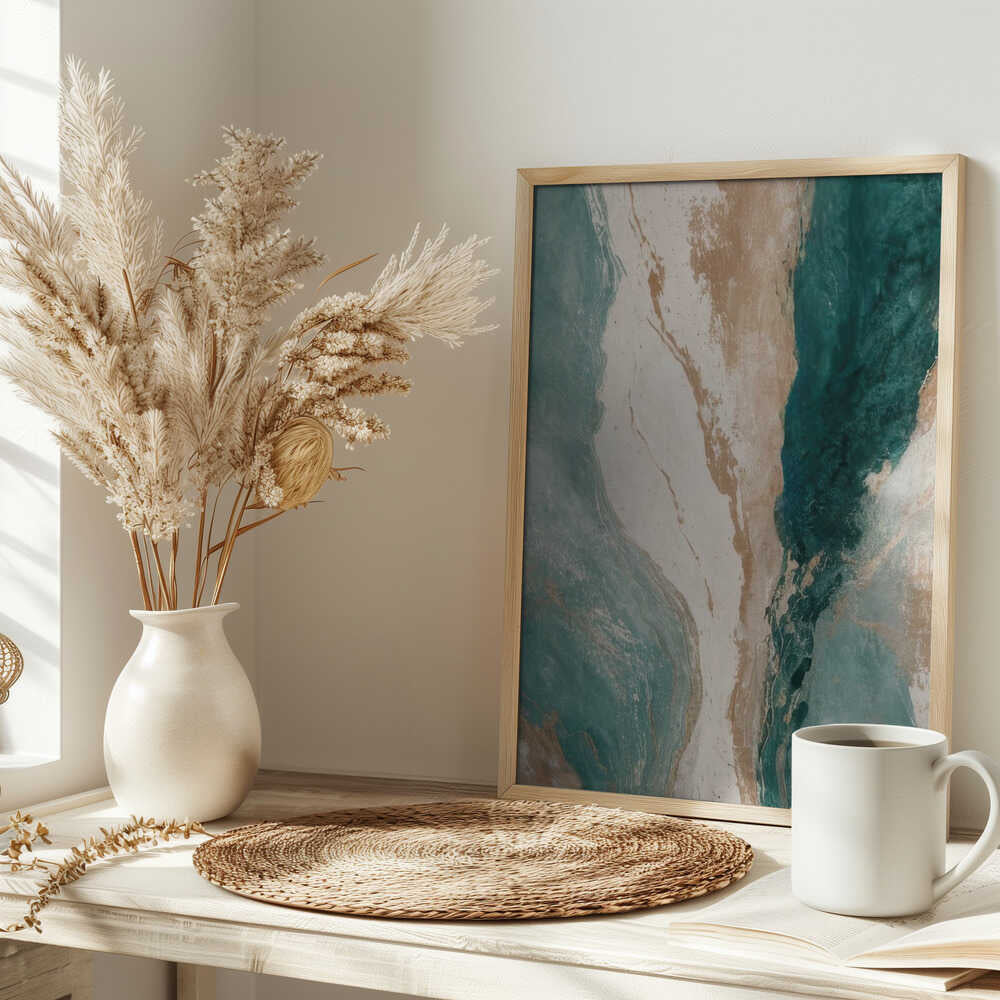 Golden Teal Current - Stretched Canvas, Poster or Fine Art Print