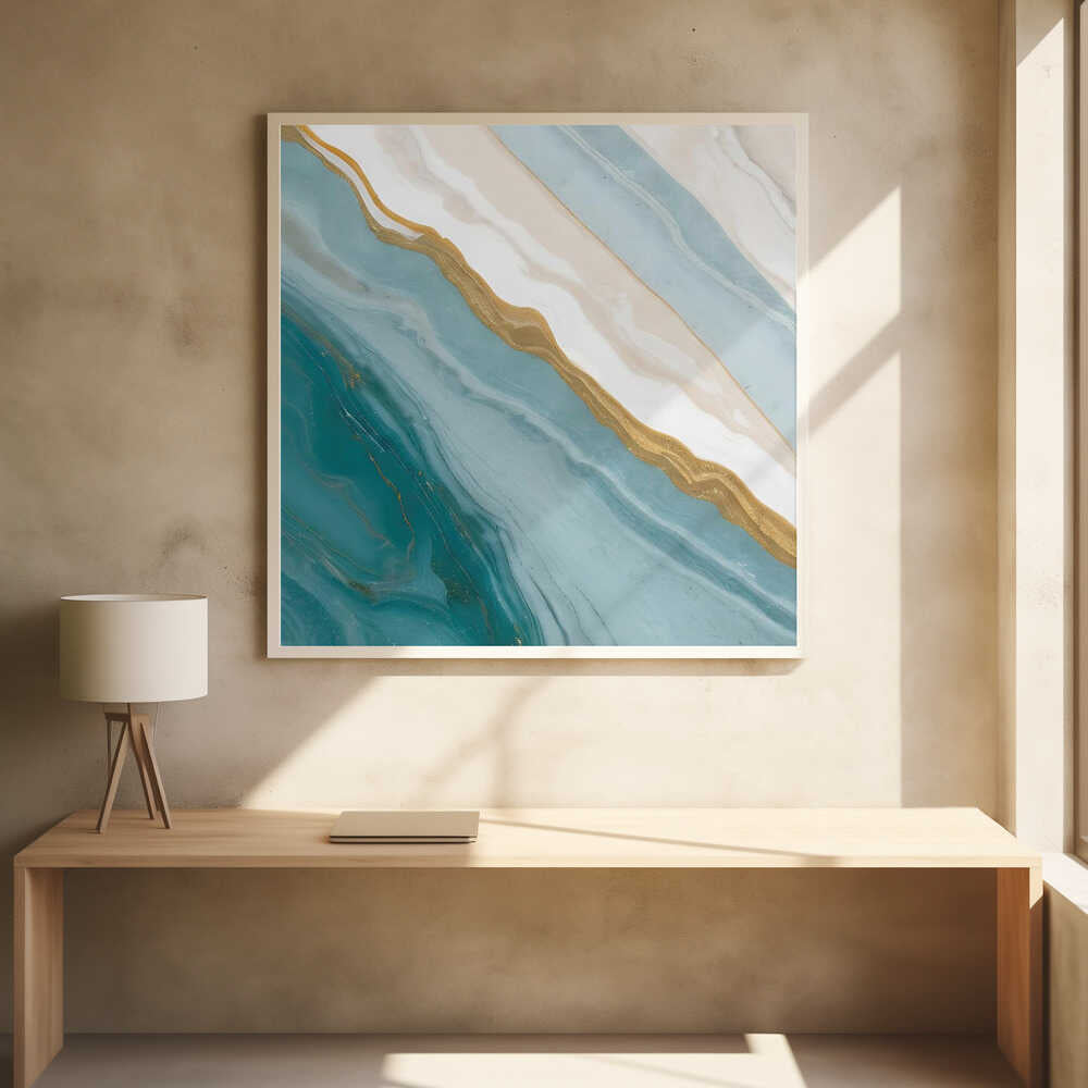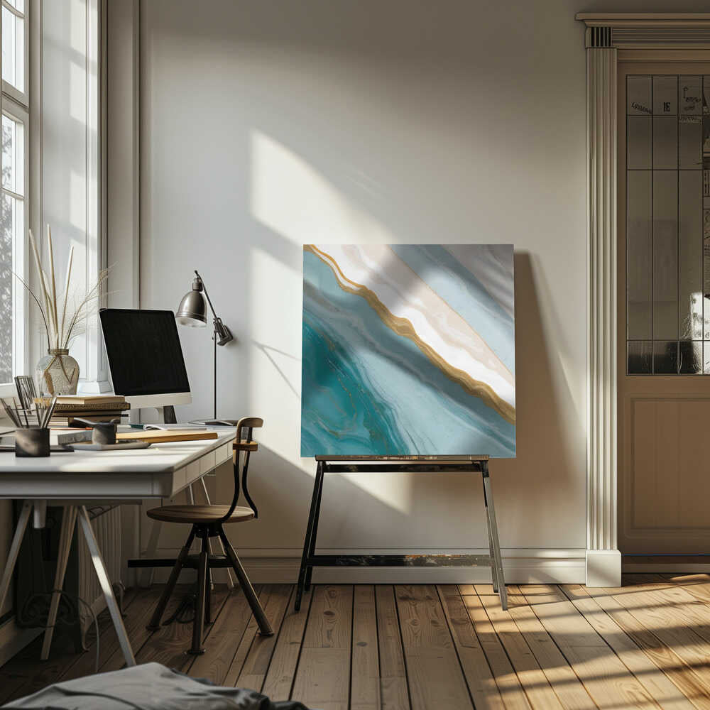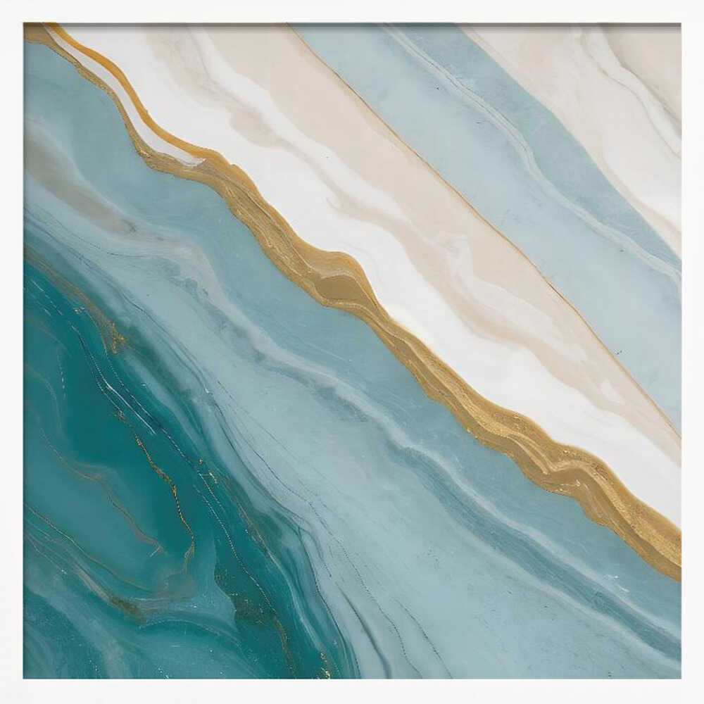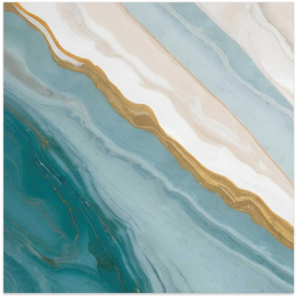 Golden Teal Flow - Square Stretched Canvas, Poster or Fine Art Print