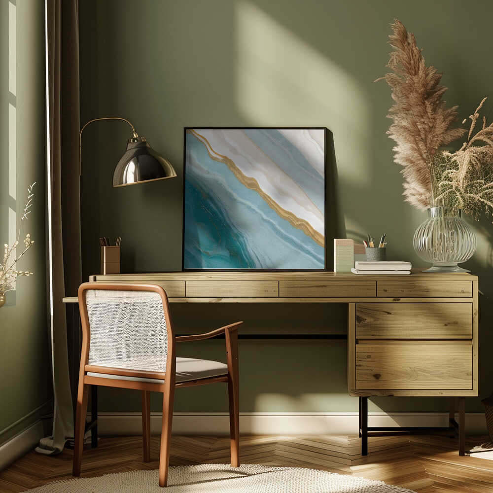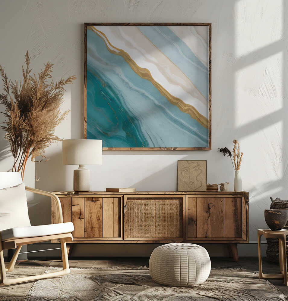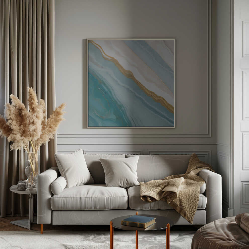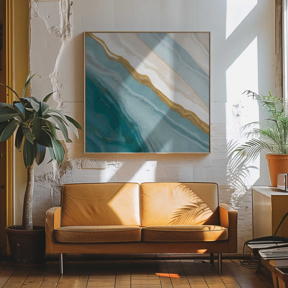 Golden Teal Flow - Square Stretched Canvas, Poster or Fine Art Print