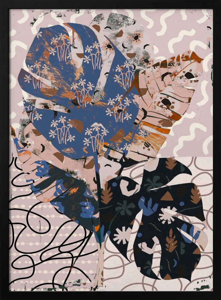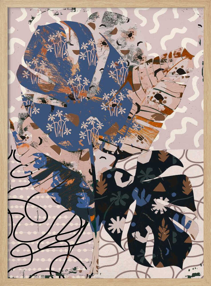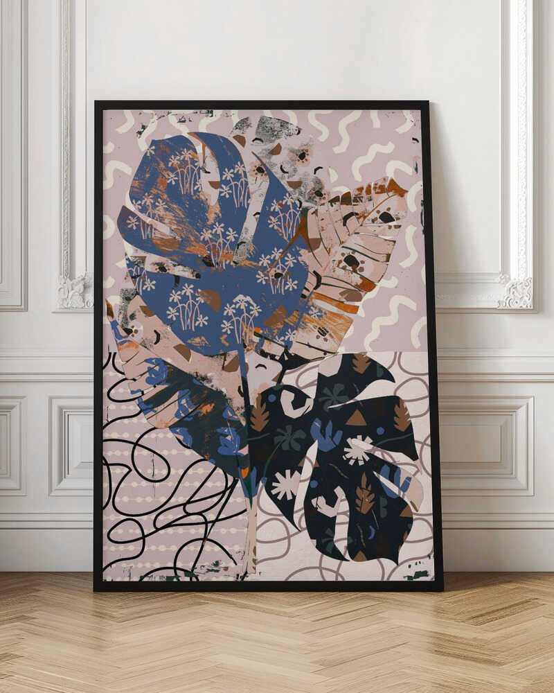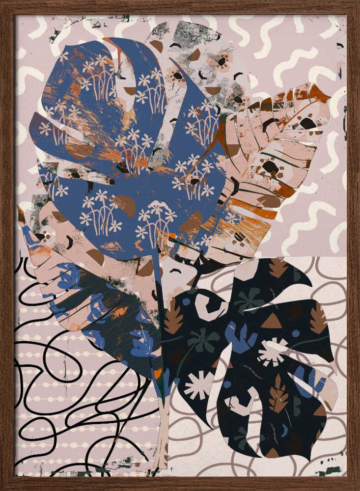 Happy Hour - Palm Plant Graphic Blue Colourful Abstract Original Artwork Wall Art Print