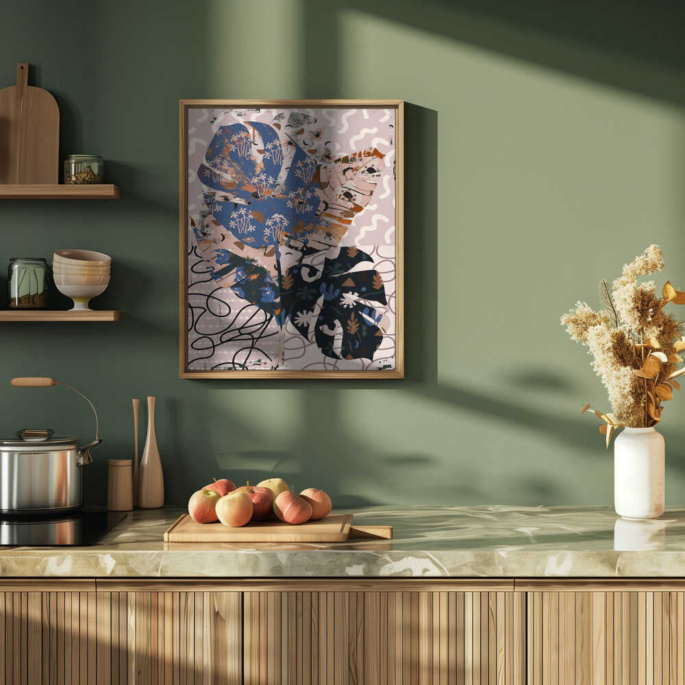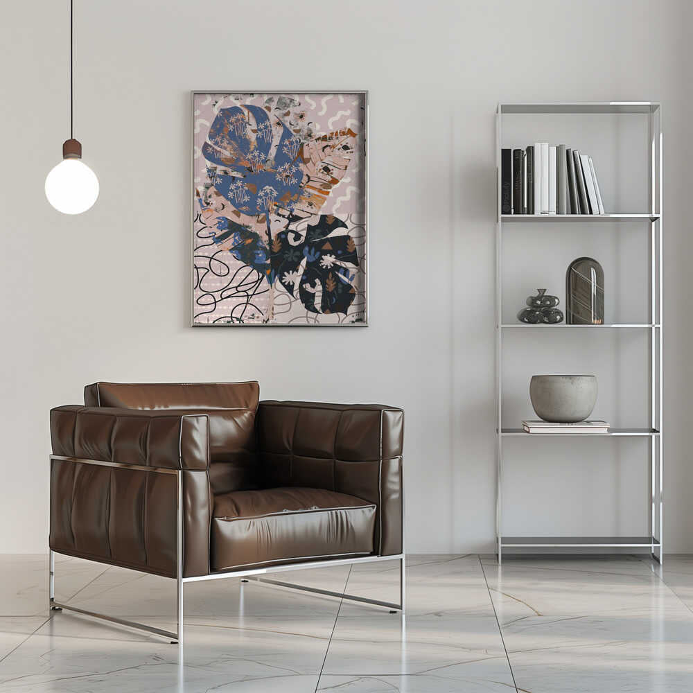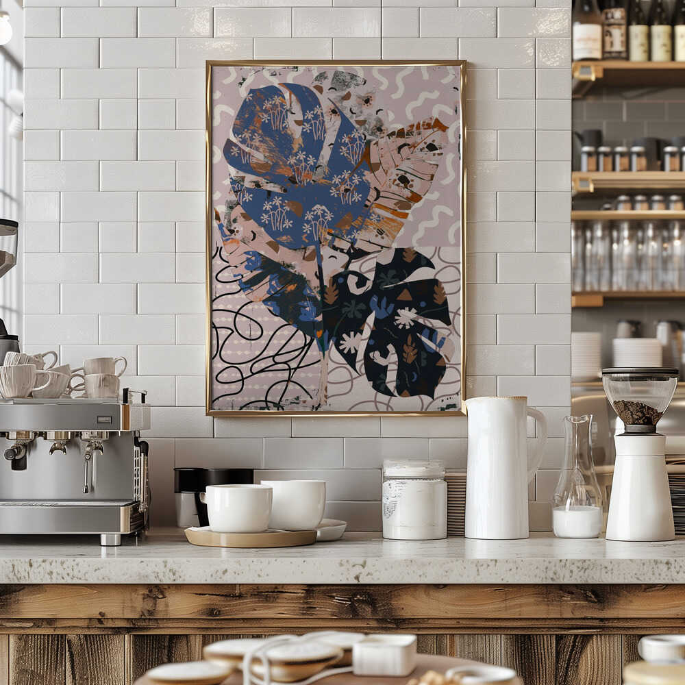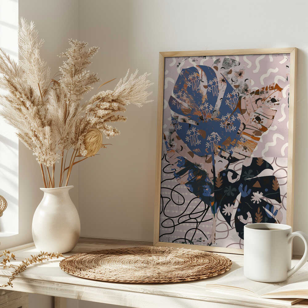 Happy Hour - Palm Plant Graphic Blue Colourful Abstract Original Artwork Wall Art Print