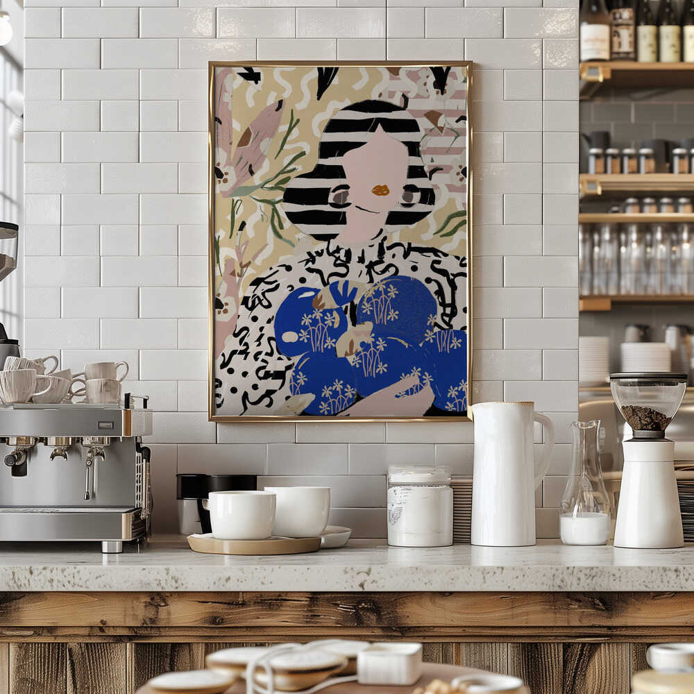 Happy Hour - Palm Plant Graphic Blue Colourful Abstract Original Artwork Wall Art Print