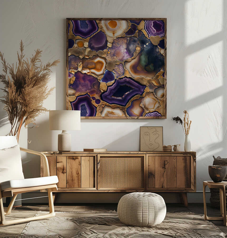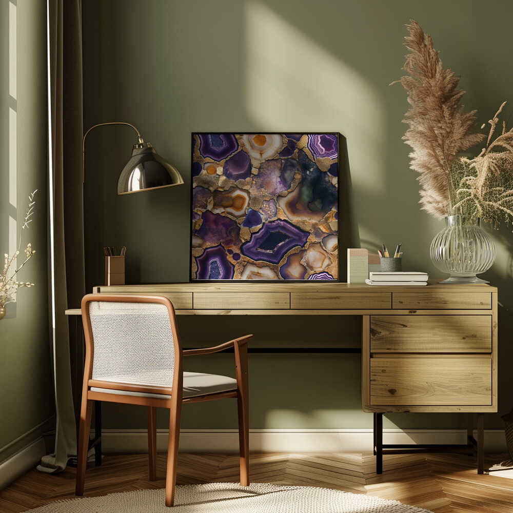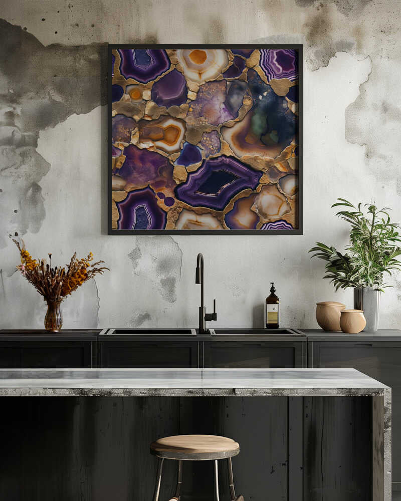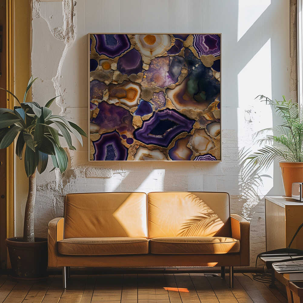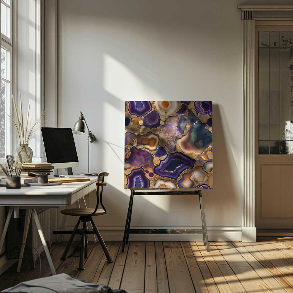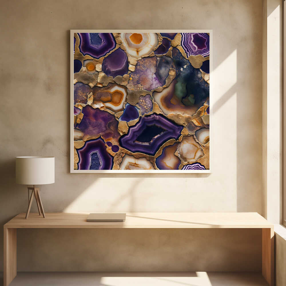 Purple Gold Agate Geode - Square Stretched Canvas, Poster or Fine Art Print