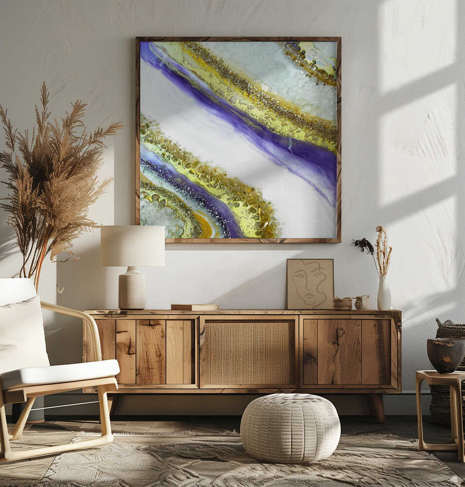 Vibrant Purple Gold Geode - Square Stretched Canvas, Poster or Fine Art Print