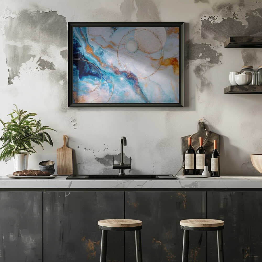 Unwind - Blue and Gree Abstract Alcohol Ink Wall Art Print