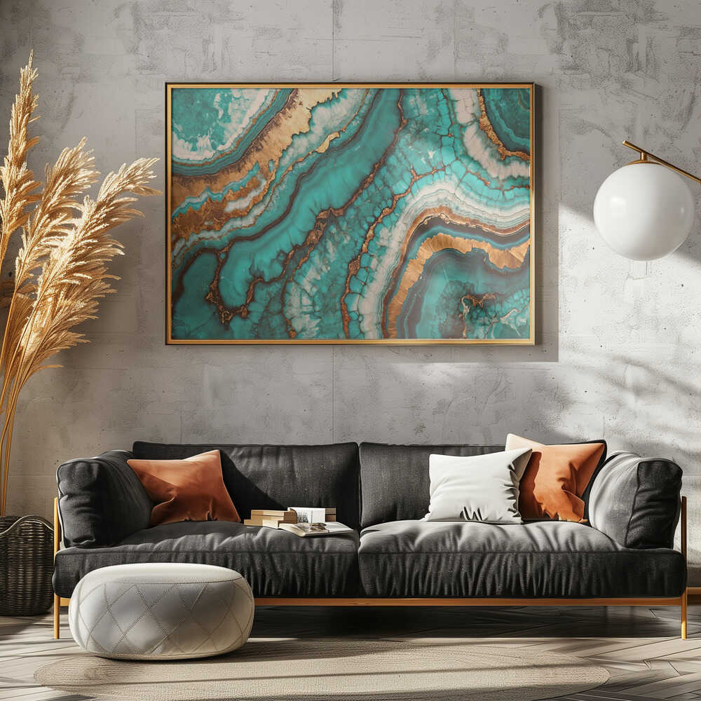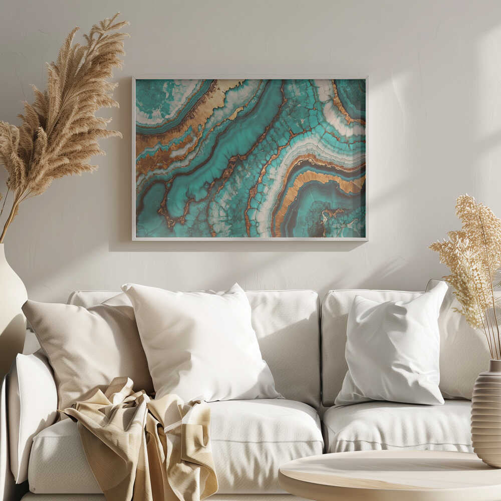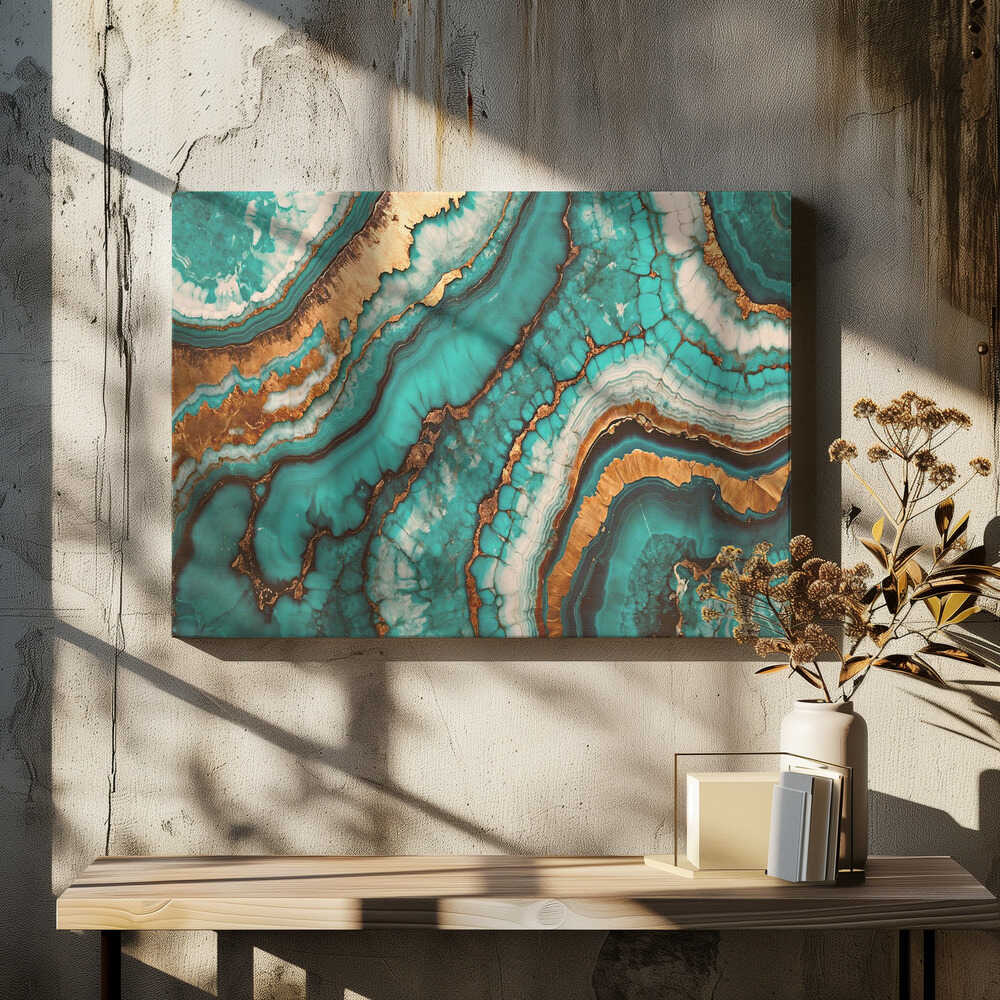 Wirling Patterns In Vibrant Turquoise - Stretched Canvas, Poster or Fine Art Print
