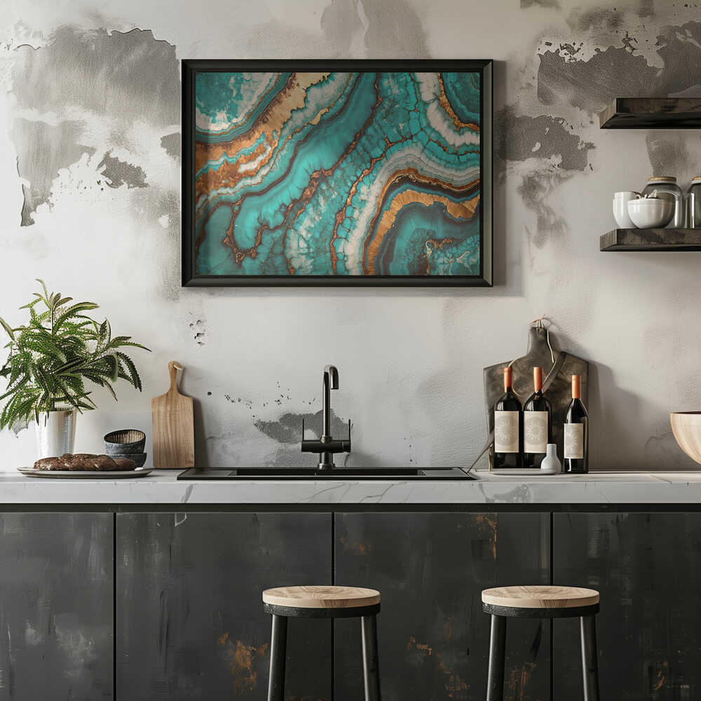 Unwind - Blue and Gree Abstract Alcohol Ink Wall Art Print