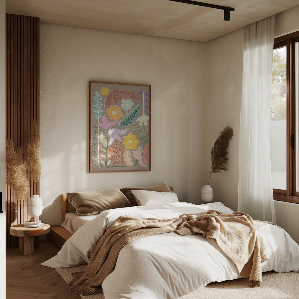 Explore our many print options for Block print summer meadow earthy tones by artist Annick.