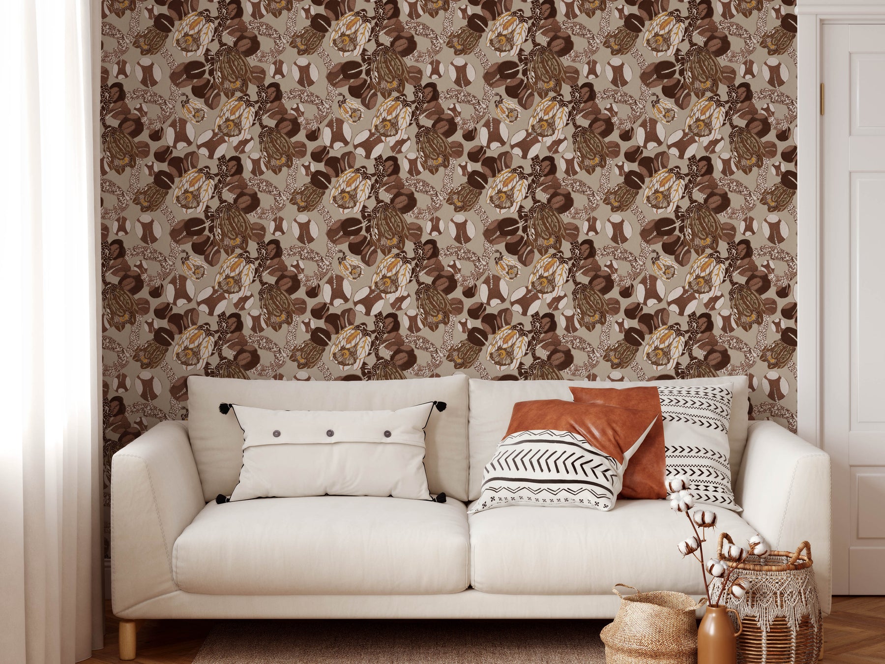Bush Garden - Natural Toned Vintage-Style Wallpaper