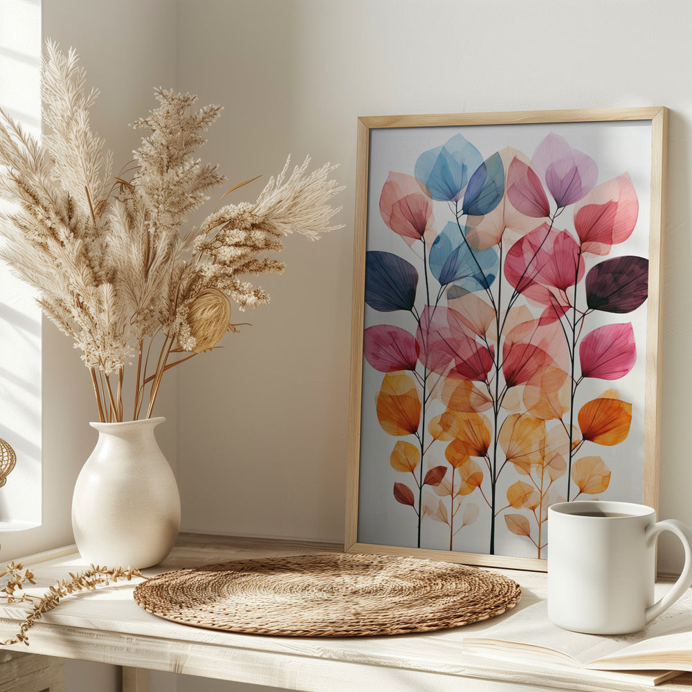 Framed Art Prints: Our framed art prints are printed onto a good quality textured art paper. A white border surrounds the design. A solid timber frame in one of four colours and a plexiglass front complete the piece.