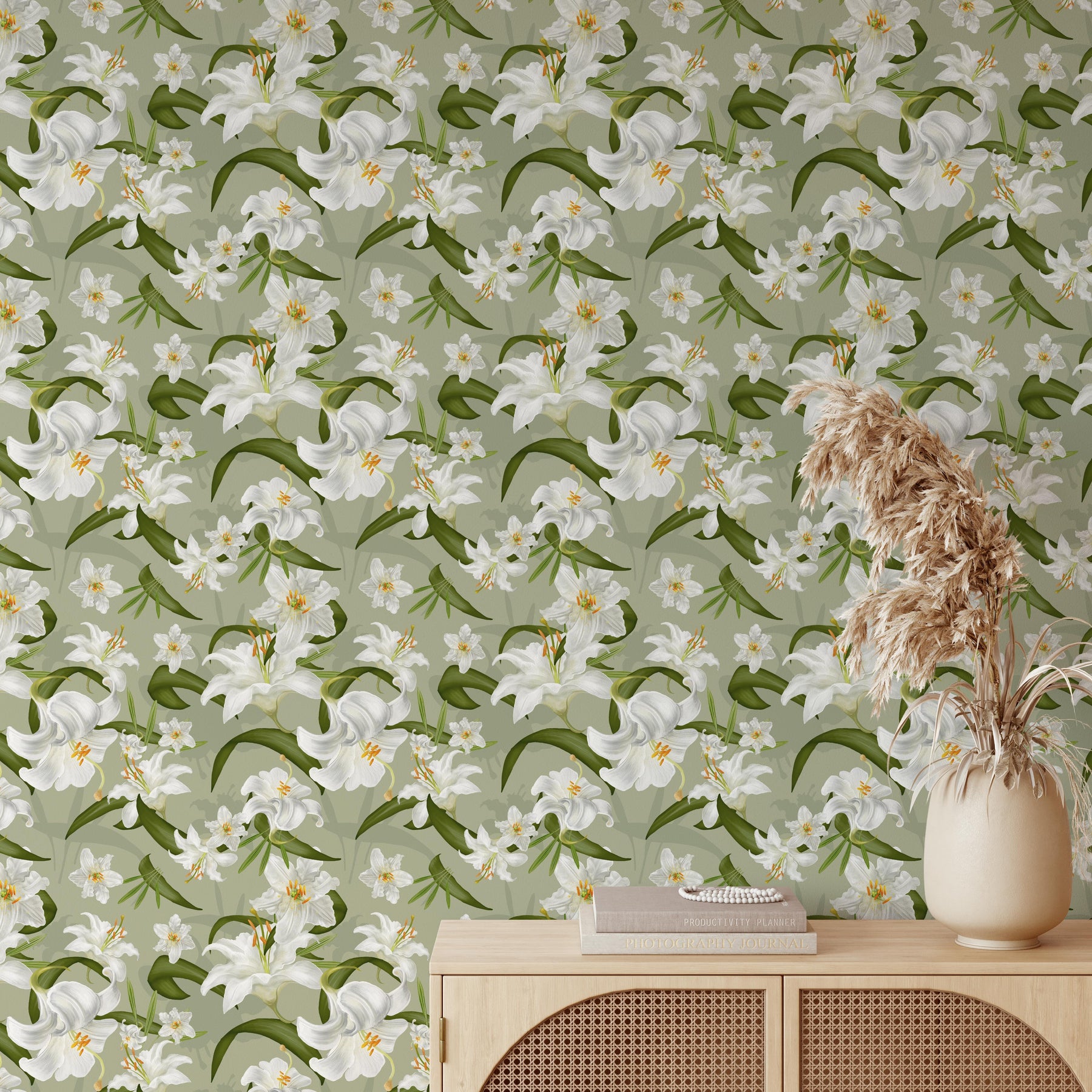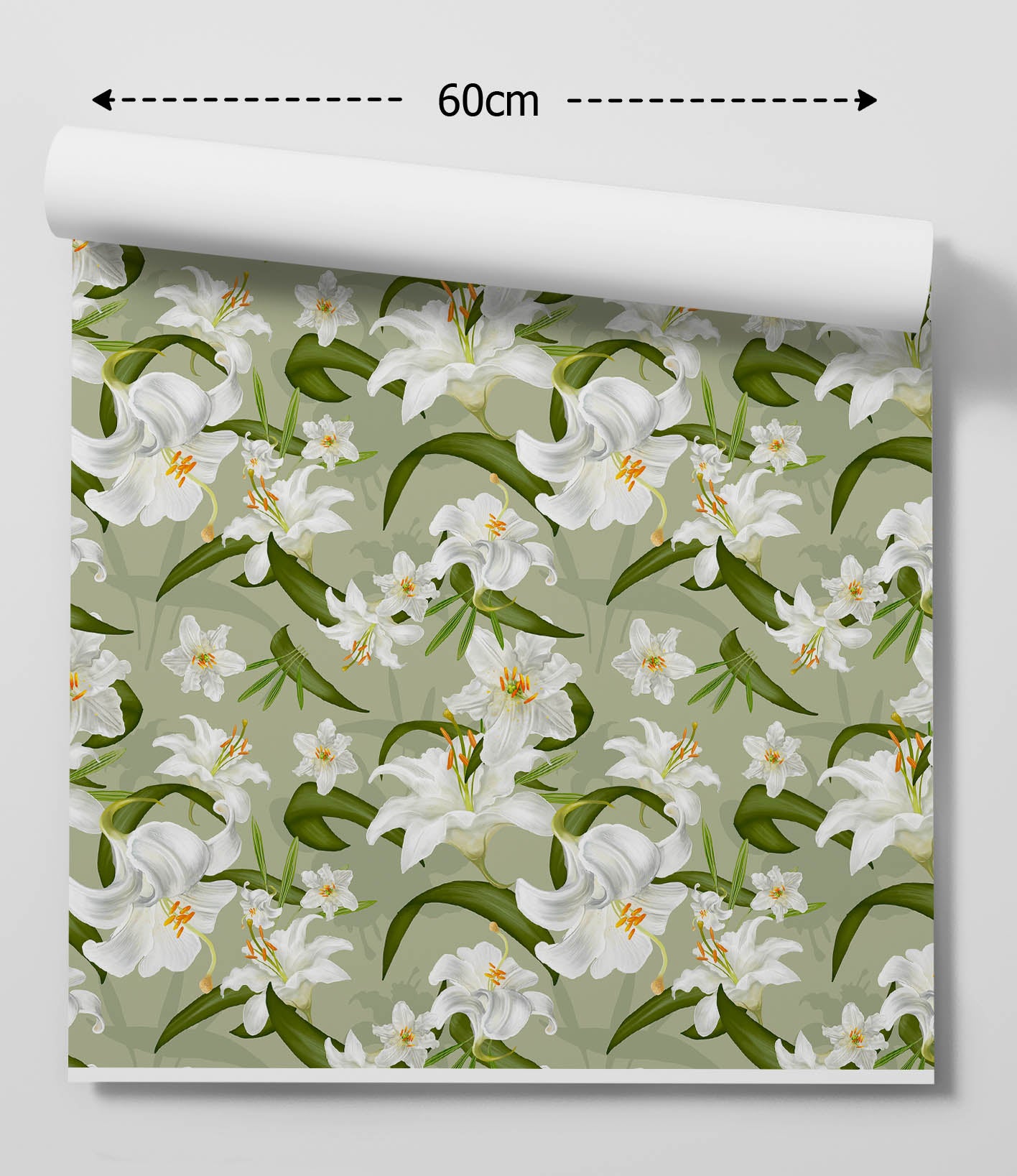 White Lily Walls - Green and White Lily Wallpaper